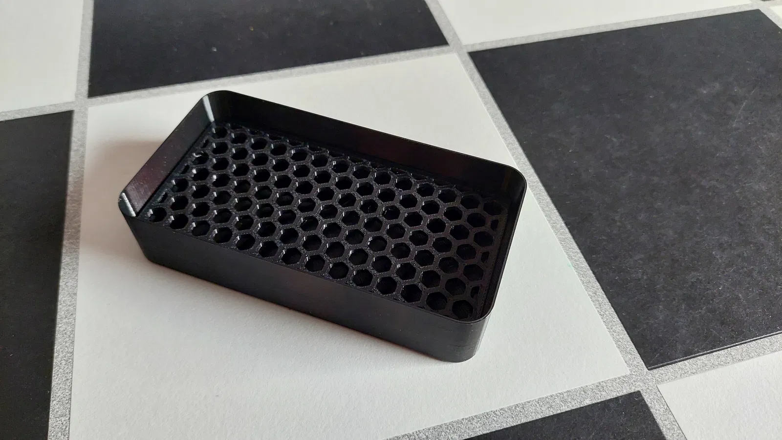 Một chiếc khay hứng nước đơn giản dành cho bàn chải móng tay, giúp bạn có thể cất bàn chải vào tủ ngay sau khi sử dụng mà không cần phải để bên ngoài cho khô. In bằng chất liệu PETG (hoặc PLA đều được) và không cần hỗ trợ (support).