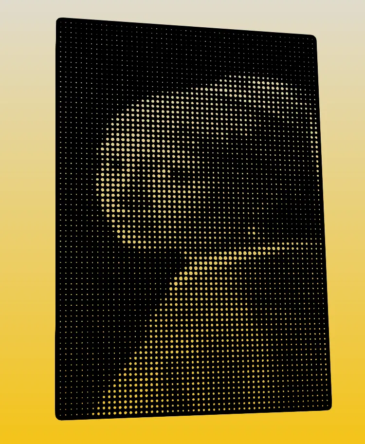 Đây là một tấm thẻ phẳng đơn giản được thiết kế theo phong cách dot art độc đáo. Hình ảnh sẽ hiện lên khi soi dưới ánh sáng. Bạn có thể in bằng nhựa có độ tương phản cao như màu đen để có kết quả tốt nhất.