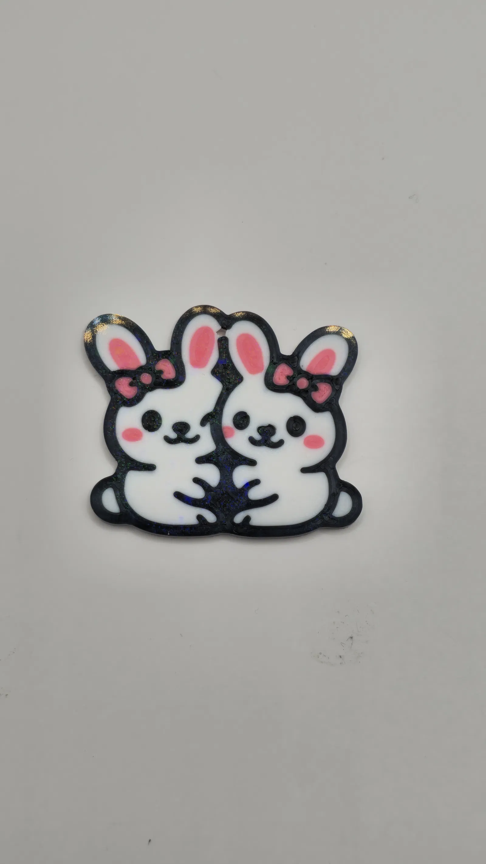 Mẫu Móc khóa Thỏ đôi Easter siêu cưng này có hình hai chú thỏ kawaii đáng yêu ngồi cùng nhau, mỗi chú thỏ đều có một chiếc nơ nhỏ và các chi tiết lễ Phục sinh xinh xắn. 🐰🎀