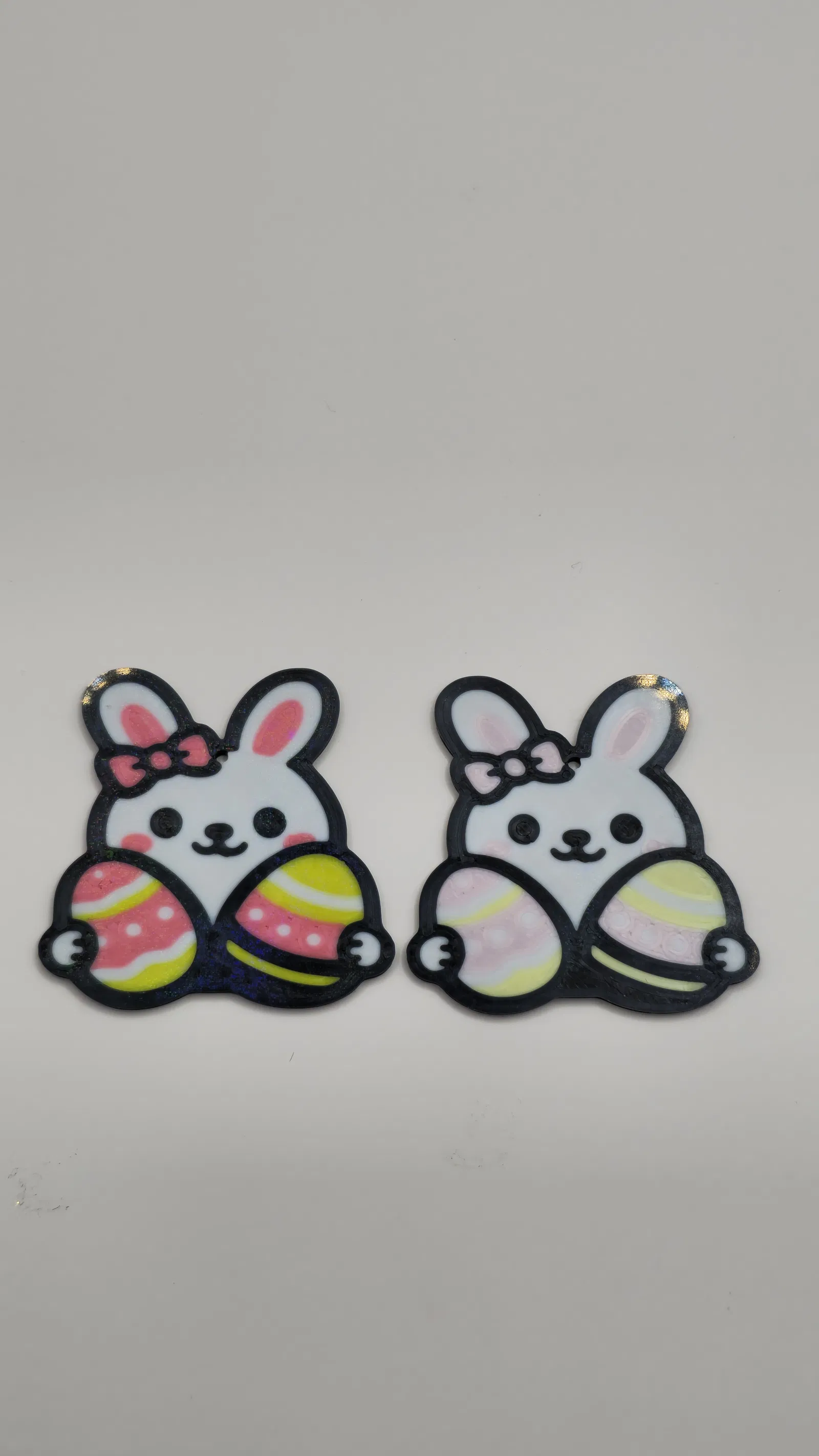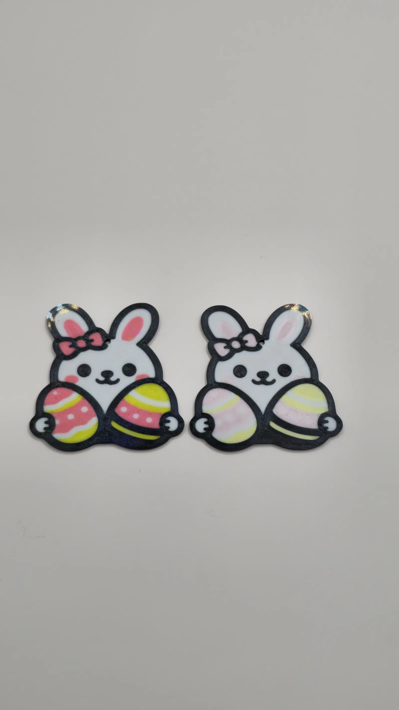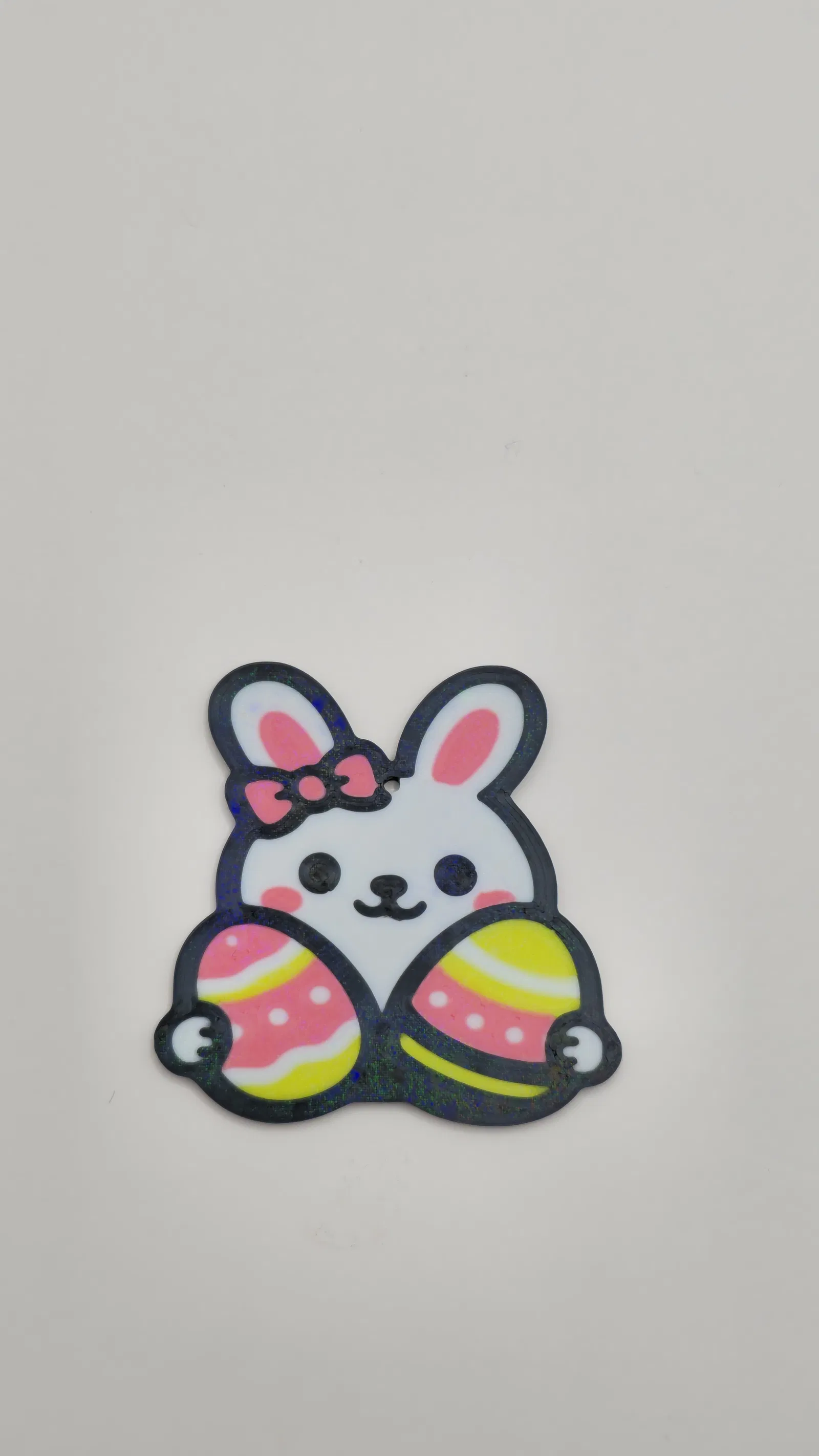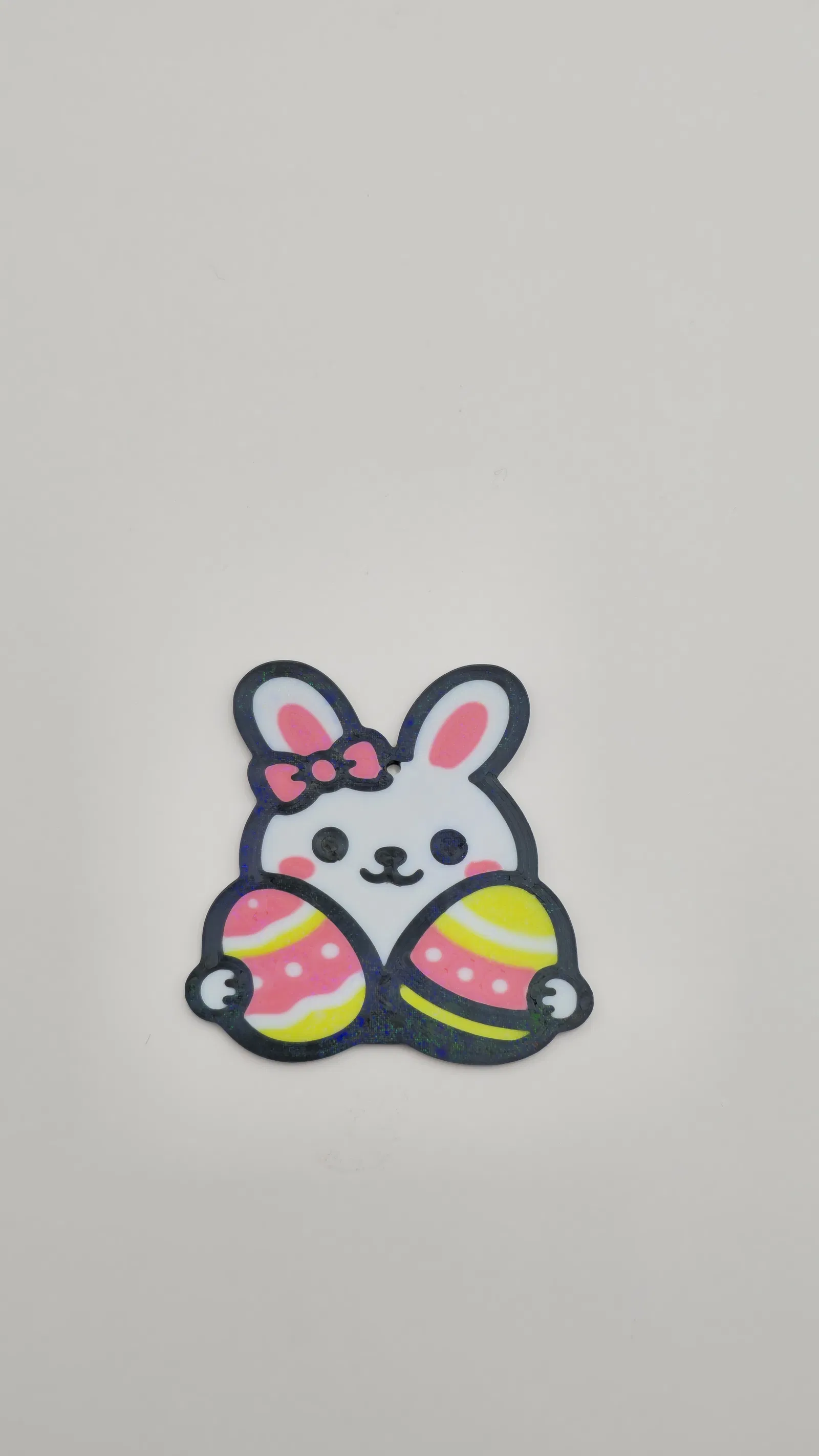 Cấu trúc phân lớp cho phép in đa sắc màu cực đẹp, làm nổi bật chú thỏ, chiếc nơ và những quả trứng Phục sinh.