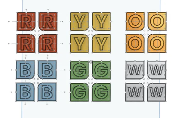 Bộ miếng dán bề mặt nổi giúp giải khối Rubik 2x2 mà không cần nhìn màu. Các ký tự được khắc nổi là chữ cái đầu của tên màu bằng tiếng Anh, hỗ trợ người khiếm thị hoặc người muốn thử thách bản thân.