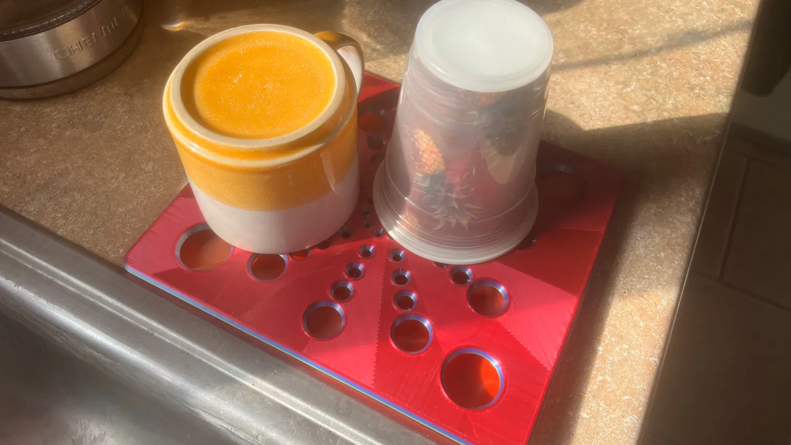 Bạn đang tìm kiếm một giải pháp thông minh để sắp xếp ly chén ngay trên mặt bàn bếp? Bộ khay úp chén ly này là lựa chọn hoàn hảo cho không gian bếp nhỏ. Thiết kế bao gồm một khay hứng nước phía dưới và một tấm lưới đục lỗ phía trên, giúp ly cốc khô ráo nhanh chóng mà vẫn giữ mặt bếp sạch sẽ, không bị đọng nước. Sản phẩm cực kỳ dễ in bằng công nghệ 3D với nhựa PLA hoặc PETG, đảm bảo độ bền cao và tính thẩm mỹ. Đây là món phụ kiện bếp cần thiết, giúp tối ưu hóa không gian và giữ cho góc rửa bát của bạn luôn ngăn nắp, khô thoáng mỗi ngày.