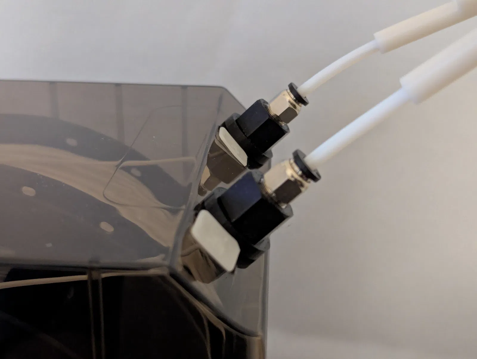 Sự khác biệt giữa v1 và v2 là đường kính lỗ dẫn sợi nhựa trong vít (4mm ở v1; 5mm ở v2). Với tôi, phiên bản gốc hơi chật để luồn ống PTFE vào hộp. Vì vị trí ống đã được cố định bởi khớp nối nên không cần thiết phải thiết kế chật như vậy.