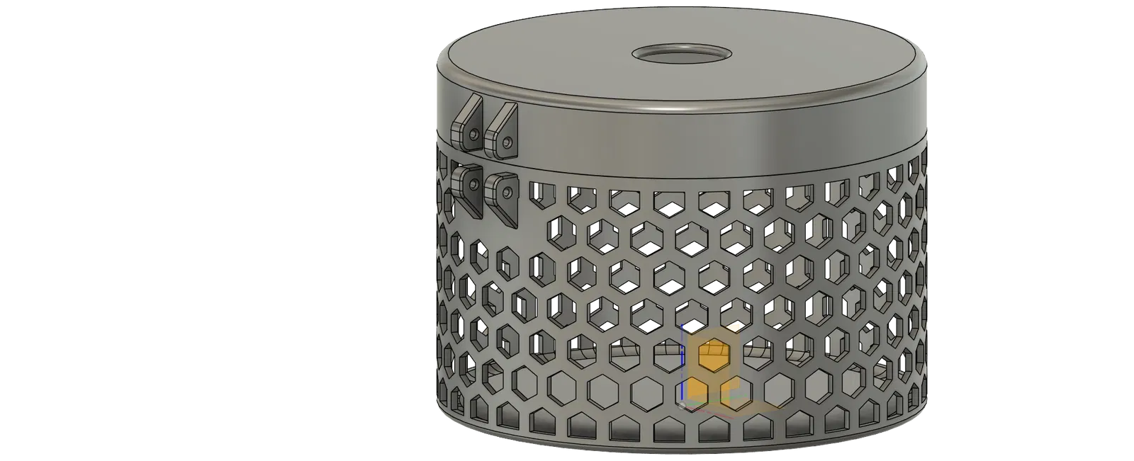 Sản phẩm được thiết kế với hai phần chính gồm thân hộp lưới và nắp đậy, kết nối chặt chẽ với nhau thông qua hệ thống ren xoắn. Điểm đặc biệt của thiết kế này là các chi tiết bản lề được tích hợp sẵn ở bên ngoài, giúp việc đóng mở nắp trở nên thuận tiện và chắc chắn hơn. Bạn có thể sử dụng hộp để đựng dây thừng, cuộn chỉ, hoặc các linh kiện nhỏ gọn tùy theo nhu cầu. Cấu trúc rỗng của lưới tổ ong cho phép bạn dễ dàng quan sát bên trong mà không cần phải mở nắp, giúp tiết kiệm thời gian tìm kiếm vật dụng.