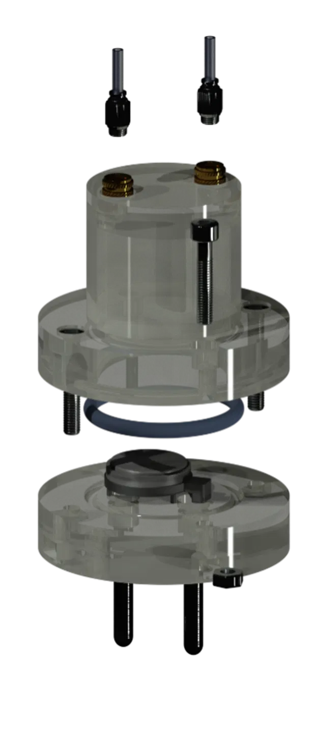 Mẫu mô hình được sử dụng trong ấn phẩm Gualdron-Plata, A.P., Angelis, L.D., Torresi, S.I.C., Martins, V.L. A Cost-Effective 3D-Printed prototype cell for reproducible Li-O2 battery testing. J Appl Electrochem 56, 9 (2026). Khi sử dụng mô hình này trong các bài báo khoa học, vui lòng trích dẫn nguồn: https://doi.org/10.1007/s10800-025-02415-w