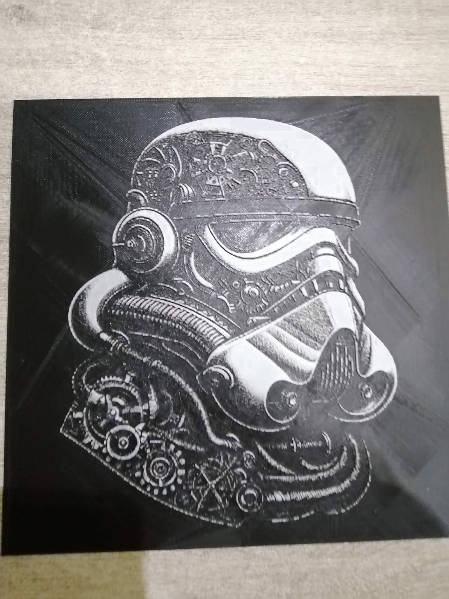 Nếu bạn là một tín đồ của Star Wars và yêu thích kỹ thuật in 3D nghệ thuật, mẫu tranh Hue Forge hình Stormtrooper này chắc chắn sẽ làm bạn phấn khích. Đây là một tác phẩm được thiết kế tỉ mỉ với phong cách Steampunk đầy ấn tượng, kết hợp giữa sự mạnh mẽ của lính Stormtrooper và những chi tiết bánh răng, cơ khí phức tạp. Tác phẩm không chỉ là một món đồ trang trí đơn thuần mà còn là minh chứng cho sự tinh tế của công nghệ in 3D hiện đại khi có thể tạo ra những mảng màu chuyển sắc đầy sống động trên bề mặt phẳng.