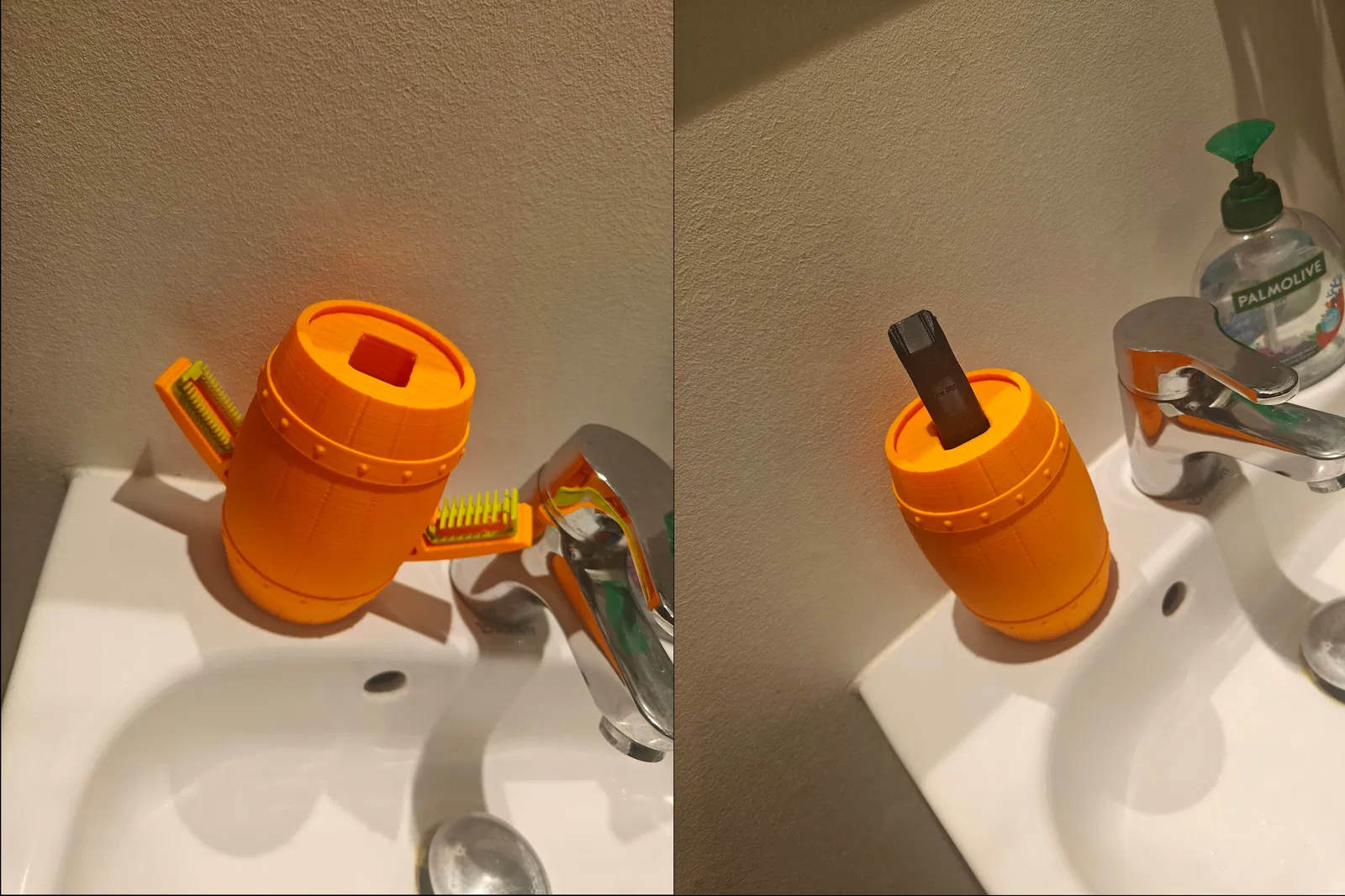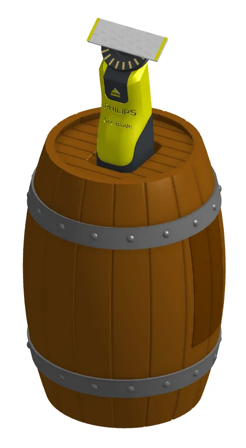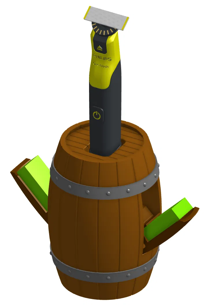 Mình thiết kế chiếc đế cắm này dành cho Philips Oneblade 360 Qp4631/65 với mục tiêu tạo ra nơi cất giữ lược tỉa và đầu bảo vệ da, giúp chúng được ẩn đi khi không dùng đến nhưng vẫn có thể lấy ra dễ dàng lúc cần thiết.