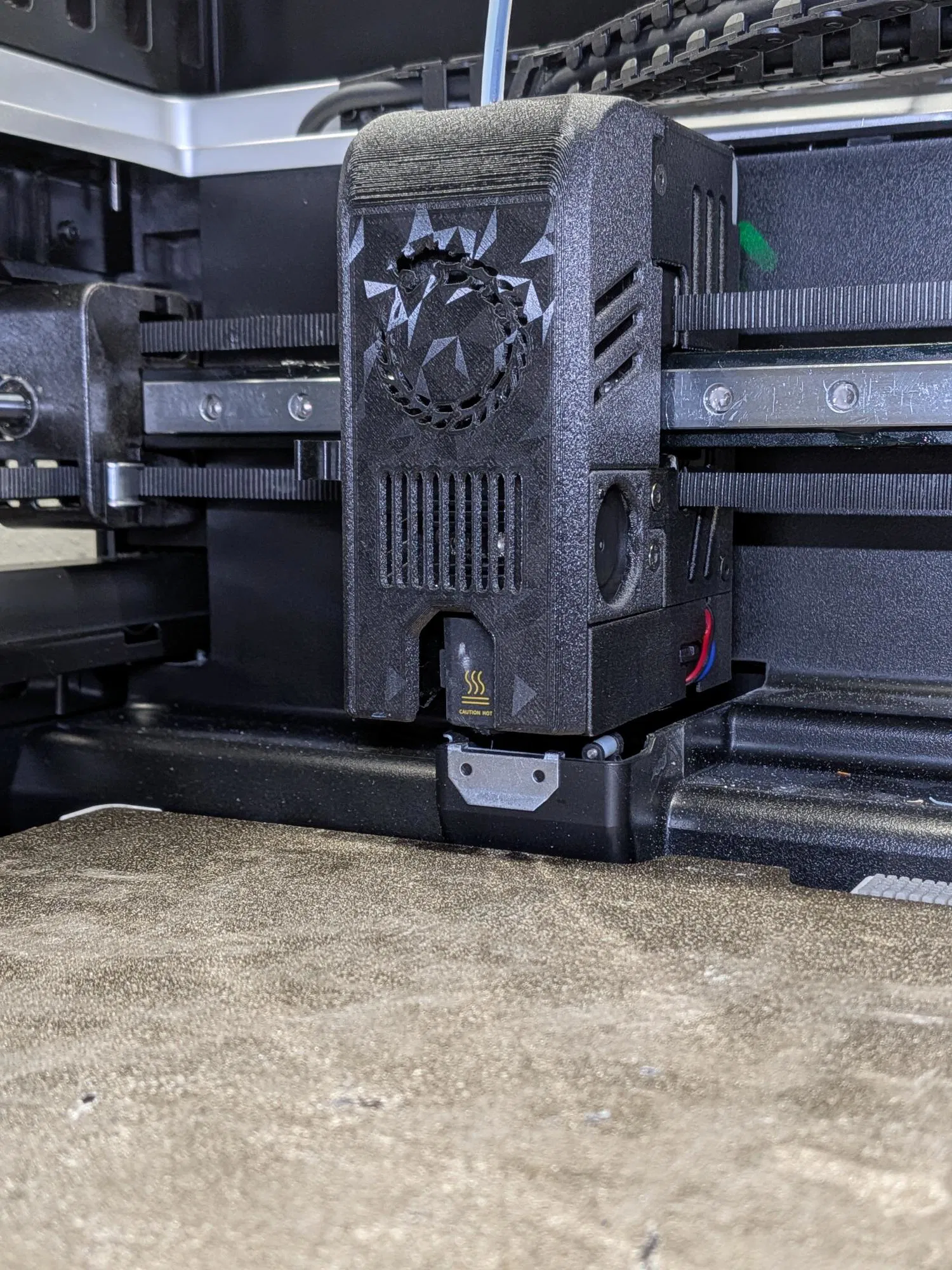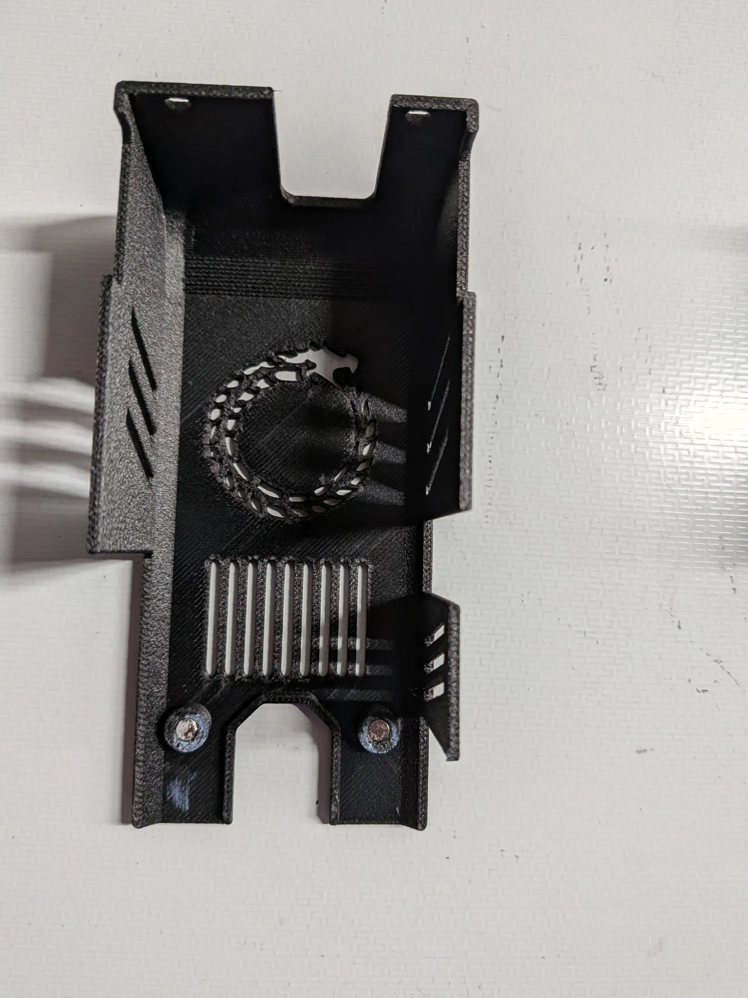 Đây là bản remix được phát triển dựa trên mẫu fan duct của mrsheikh. Mình chủ yếu chỉ sử dụng phần fan duct rồi gắn nó vào housing quạt zin của máy. Sau đó, mình thiết kế thêm các ngàm nam châm và một nắp che phía trước mới để gắn vào. Mình cũng đã in lại nắp lưng và quạt hotend để mọi thứ trông đồng bộ hơn. Mình in toàn bộ bằng nhựa PET-CF đen, thiết lập 5 lớp tường (walls), 5 lớp trần/sàn (roof/floor), 40% gyroid, và bật supports kiểu normal (chọn "tight" và chỉ cho phần build plate). Đính kèm là một mặt nạ trước để trống cùng với một phiên bản có hình Ouroboros. Mình cũng gửi kèm file STEP để các bạn có thể thoải mái thêm thiết kế riêng của mình vào nhé.
