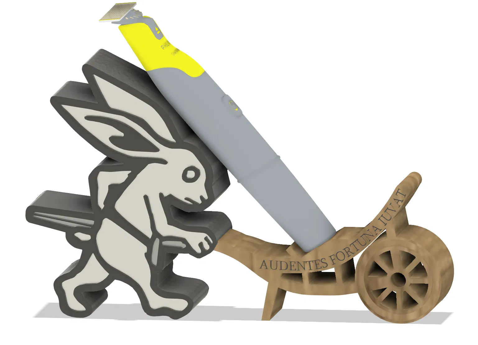 Nếu anh em đang sở hữu chiếc máy cạo râu Philips OneBlade và muốn góc làm việc hay bàn trang điểm của mình gọn gàng, thú vị hơn, thì đây chính là phụ kiện dành cho anh em. Mẫu giá đỡ này được thiết kế lấy cảm hứng từ phong cách KCD II (Kingdom Come), mô phỏng hình ảnh chú thỏ đang đẩy chiếc xe rùa, tạo nên một nét thẩm mỹ vừa cổ điển lại vừa phá cách cho không gian sống.