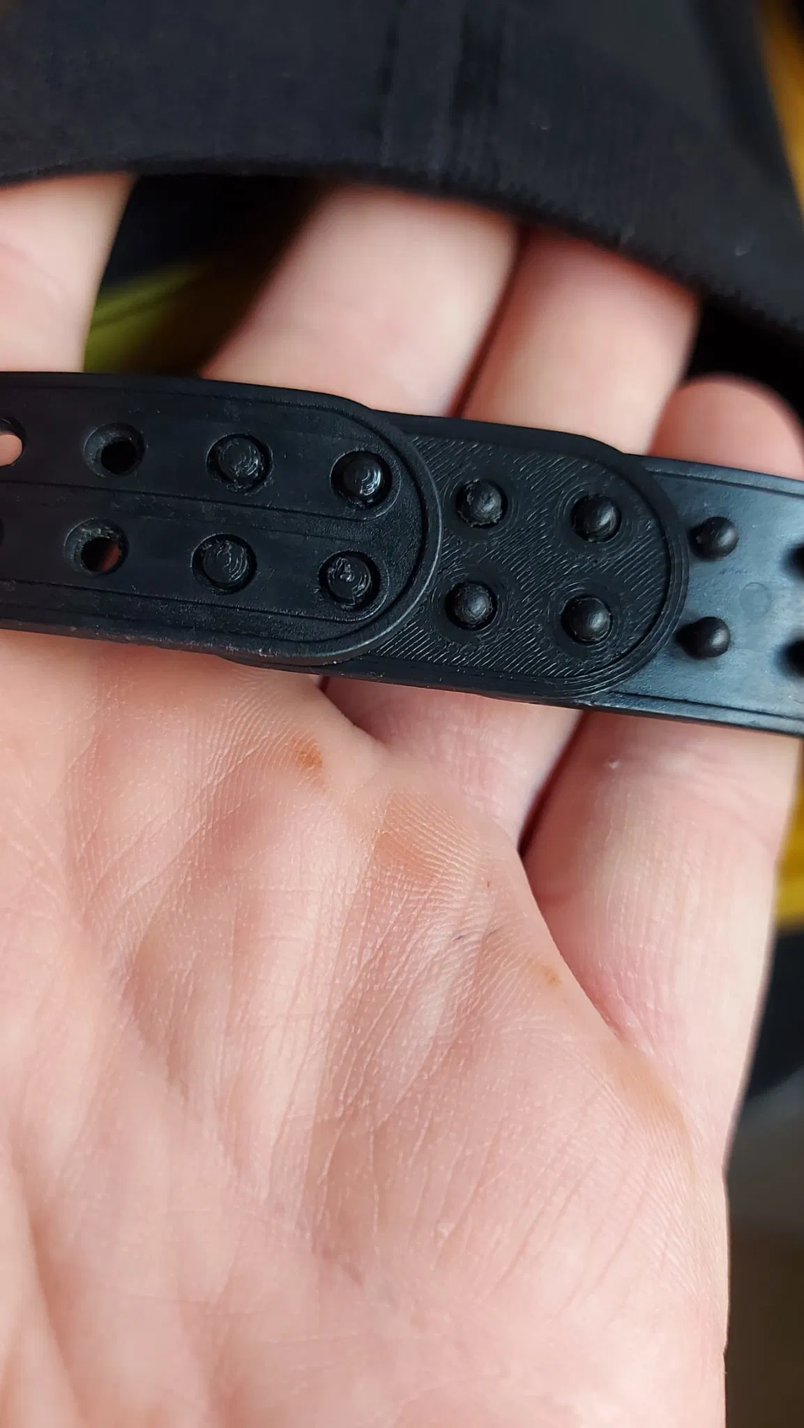 Mình đã in cái này bằng nhựa PLA. Mặc dù là chất liệu cứng, nhưng nó lại kết hợp cực kỳ hoàn hảo với phần dây nhựa dẻo của nón, mang lại sự chắc chắn và cảm giác thoải mái khi đội.