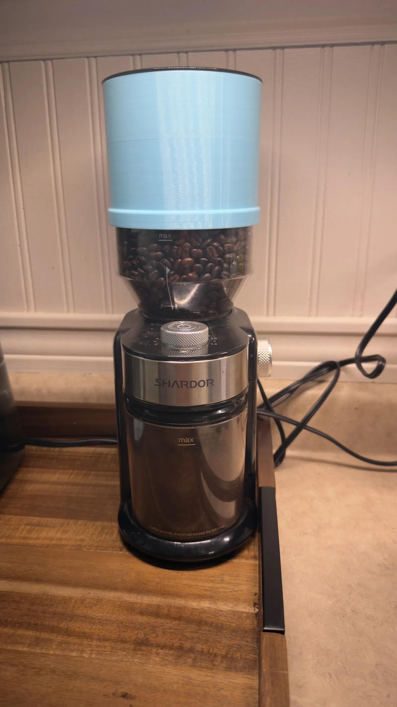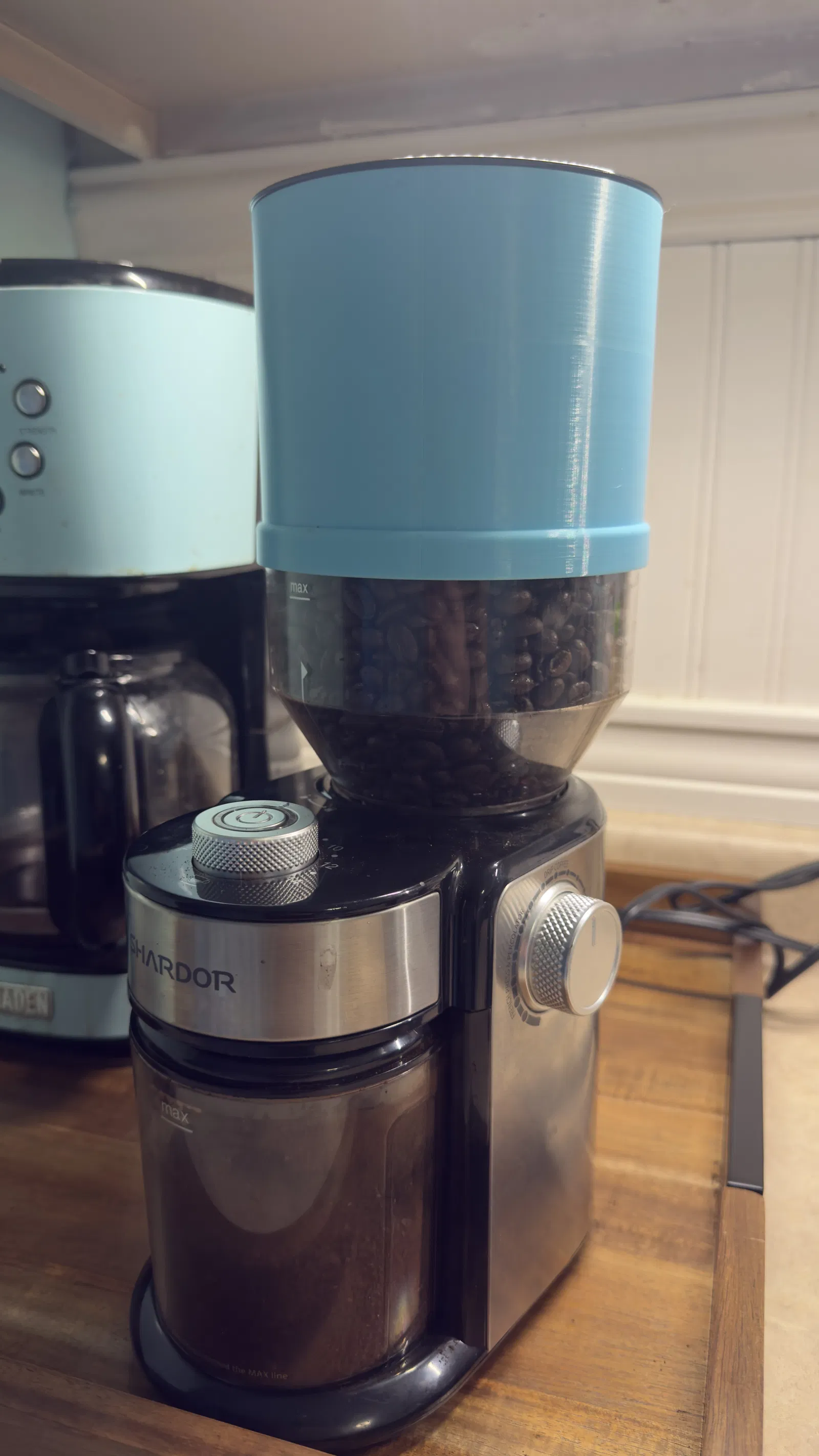 Bạn muốn xay cà phê lâu hơn mà không cần phải châm thêm hạt liên tục? Đây là giải pháp hữu ích giúp mở rộng phễu chứa cho máy xay Shardor. Sản phẩm in không cần support, lắp đặt dễ dàng và tương thích hoàn hảo với nắp máy gốc.