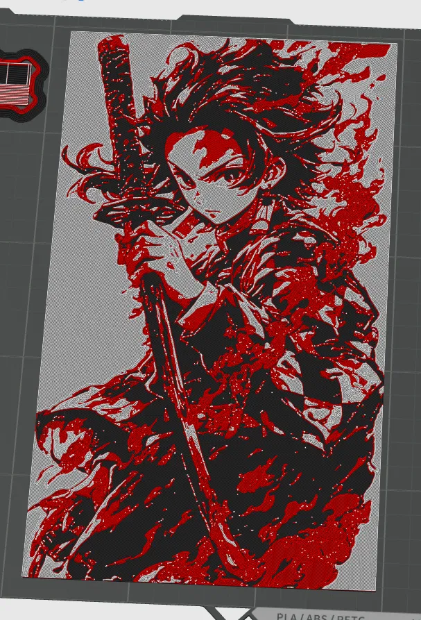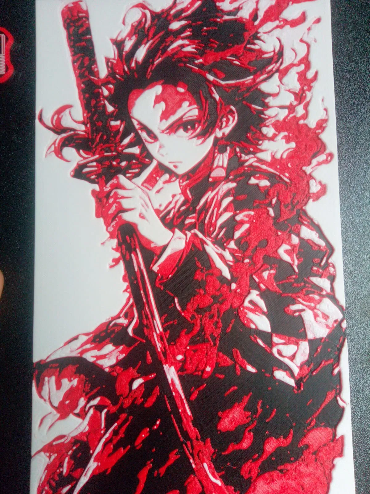 Đây là bức tranh đầu tiên trong bộ sưu tập Demon Slayer mà mình thực hiện. Hy vọng mọi người sẽ thích nó. Tác phẩm được tạo bằng chromaCanvas và in trên máy Anycubic Kobra 3 V2 với nhựa PLA chất lượng.