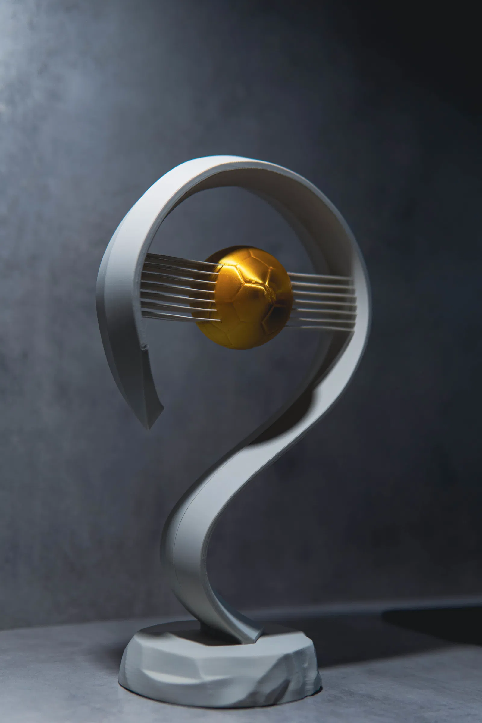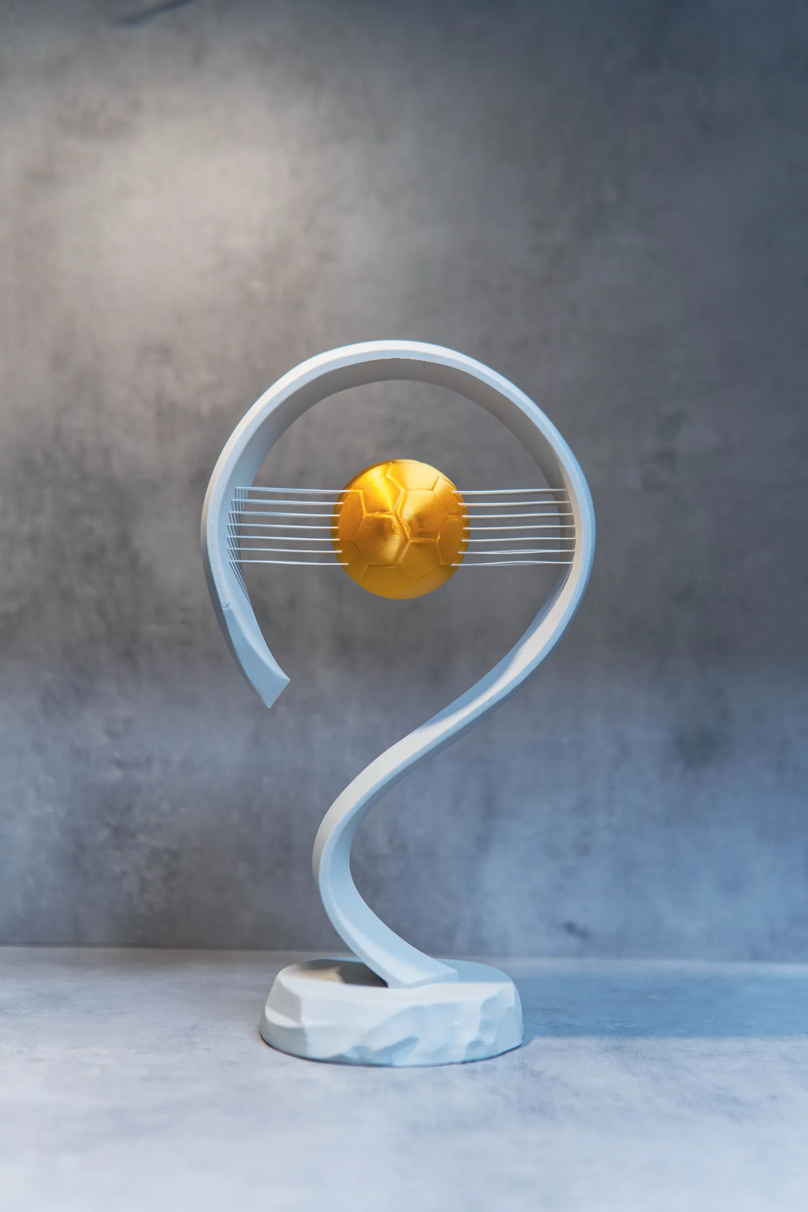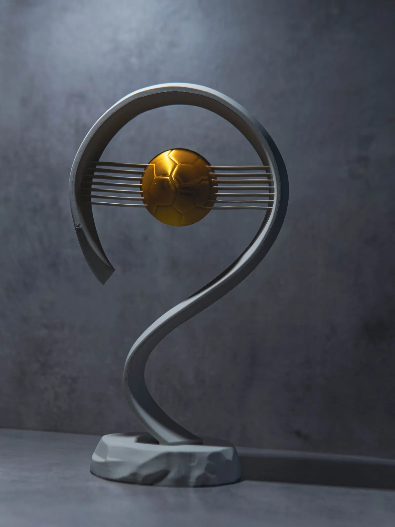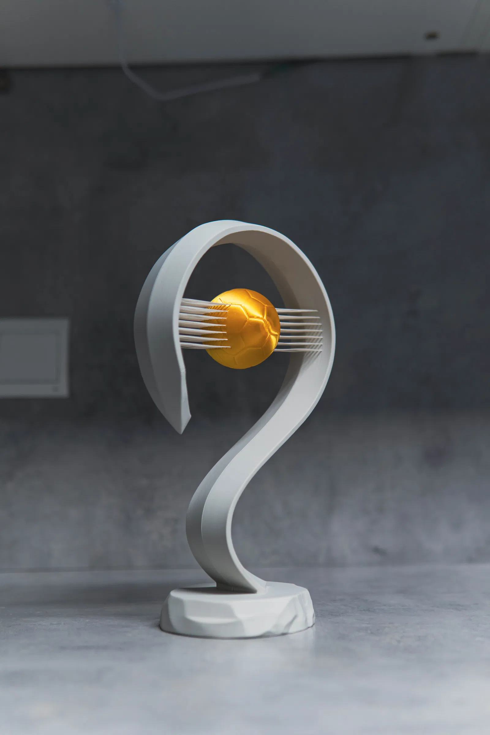 Chúng ta đều đã thấy các chiếc cúp được trao tặng và chúng trông khá ổn. Nhưng tại sao không vinh danh người nhận bằng chiếc cúp bóng đá tinh tế (nhưng cực kỳ chắc chắn) này, với những đường nét hiện đại, tối giản và một quả bóng vàng lơ lửng giữa không trung.
