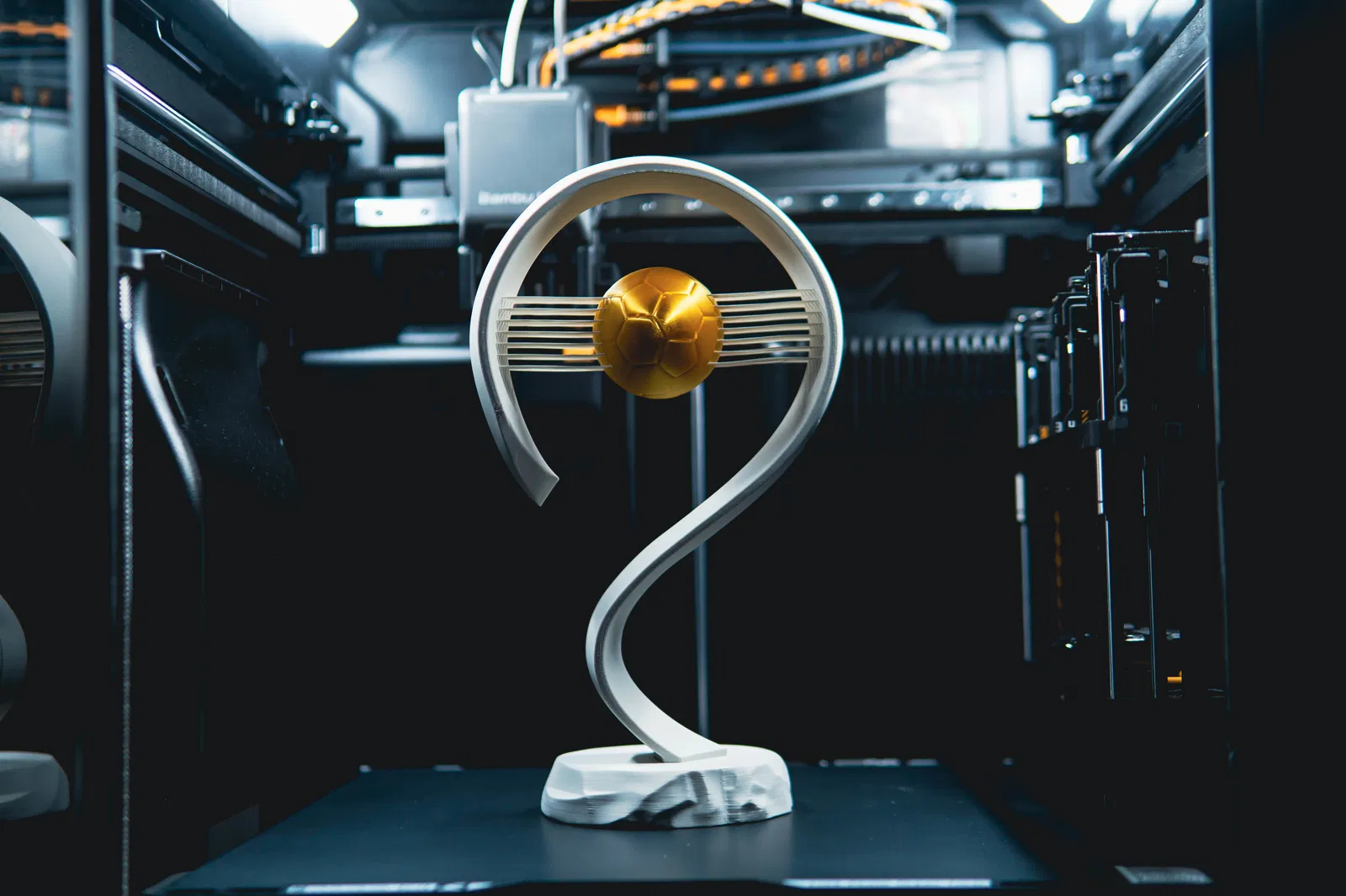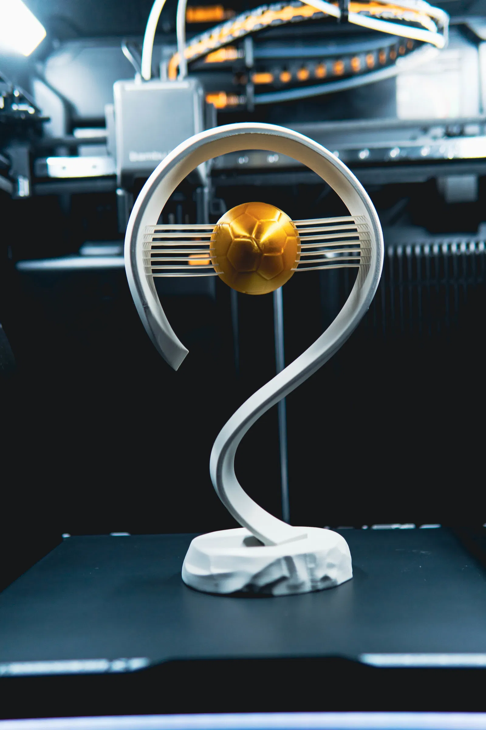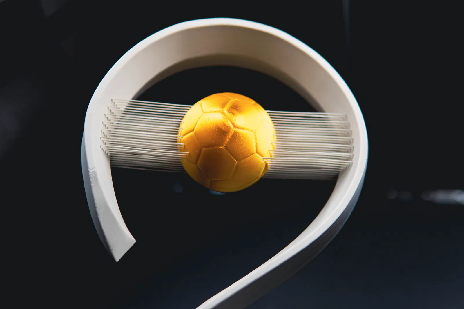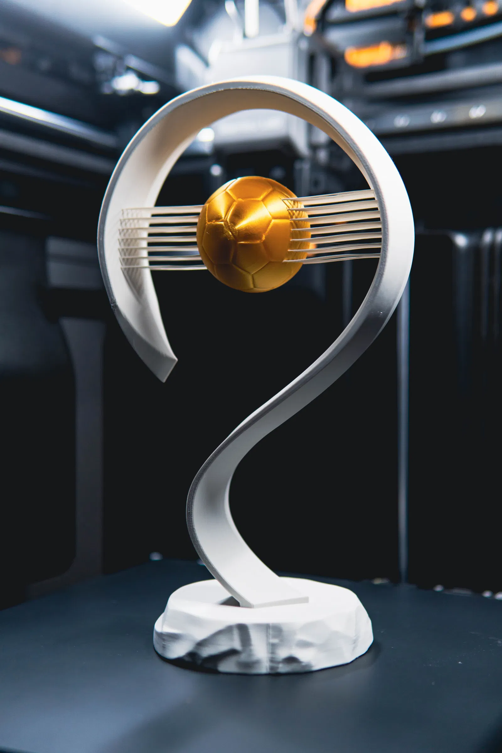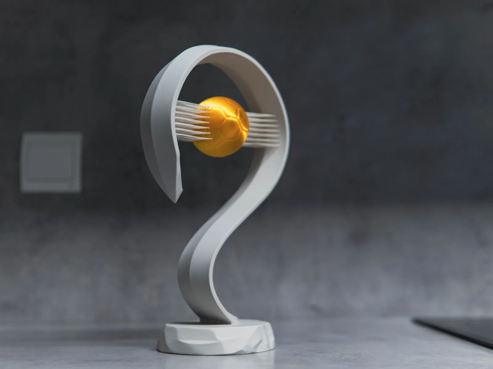 Chúng ta đều đã thấy các chiếc cúp được trao tặng và chúng trông khá ổn. Nhưng tại sao không vinh danh người nhận bằng chiếc cúp bóng đá tinh tế (nhưng cực kỳ chắc chắn) này, với những đường nét hiện đại, tối giản và một quả bóng vàng lơ lửng giữa không trung.