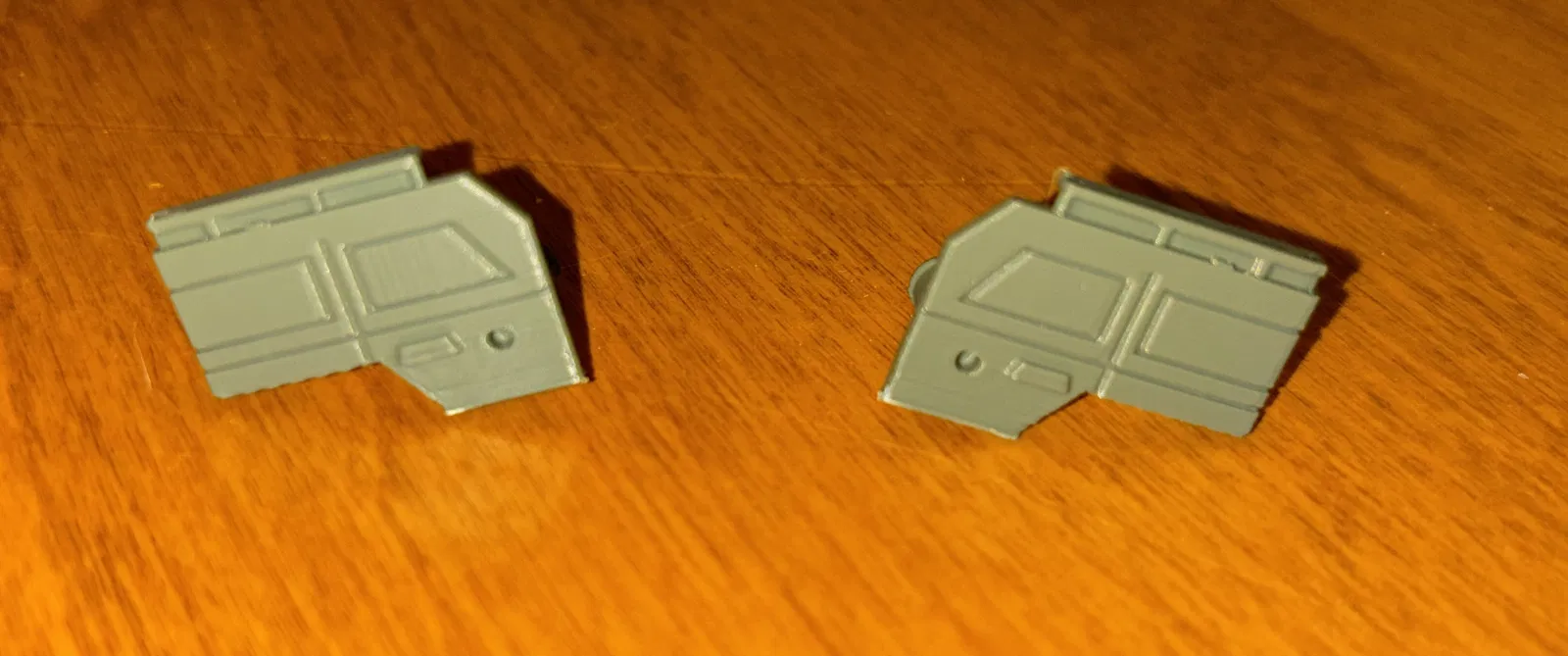 Đây là các tấm cửa thay thế cho mô hình Transformers G1 Brawn. Mình khuyến khích các bạn nên tháo rời Brawn ra để lắp đặt cho dễ nhé. Sẽ có hai khối màu vàng với các lỗ nhỏ để bạn gài những chi tiết này vào. Phần cánh tay thay thế xuất hiện trong hình ảnh là sản phẩm do alpha2turbo thiết kế.