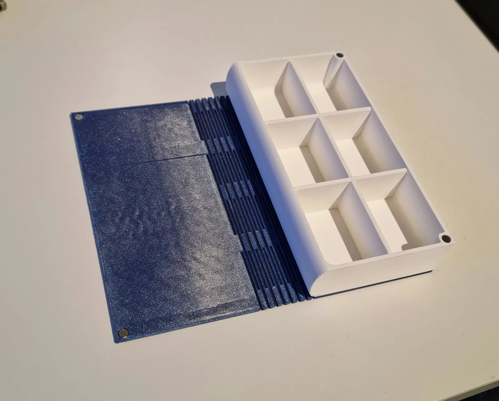 Thiết kế này được lấy cảm hứng từ model "Dice Book" nổi tiếng, cho phép in ấn dễ dàng nhờ cấu trúc "print-in-place" (in liền một khối) rất thông minh. Bạn không cần phải tốn công thêm các thiết bị hỗ trợ (support) khi in, giúp tiết kiệm thời gian và nguyên liệu đáng kể. Sản phẩm hoàn thiện có cơ chế đóng mở chắc chắn nhờ sự hỗ trợ của nam châm, đảm bảo các món đồ bên trong luôn được bảo vệ an toàn.