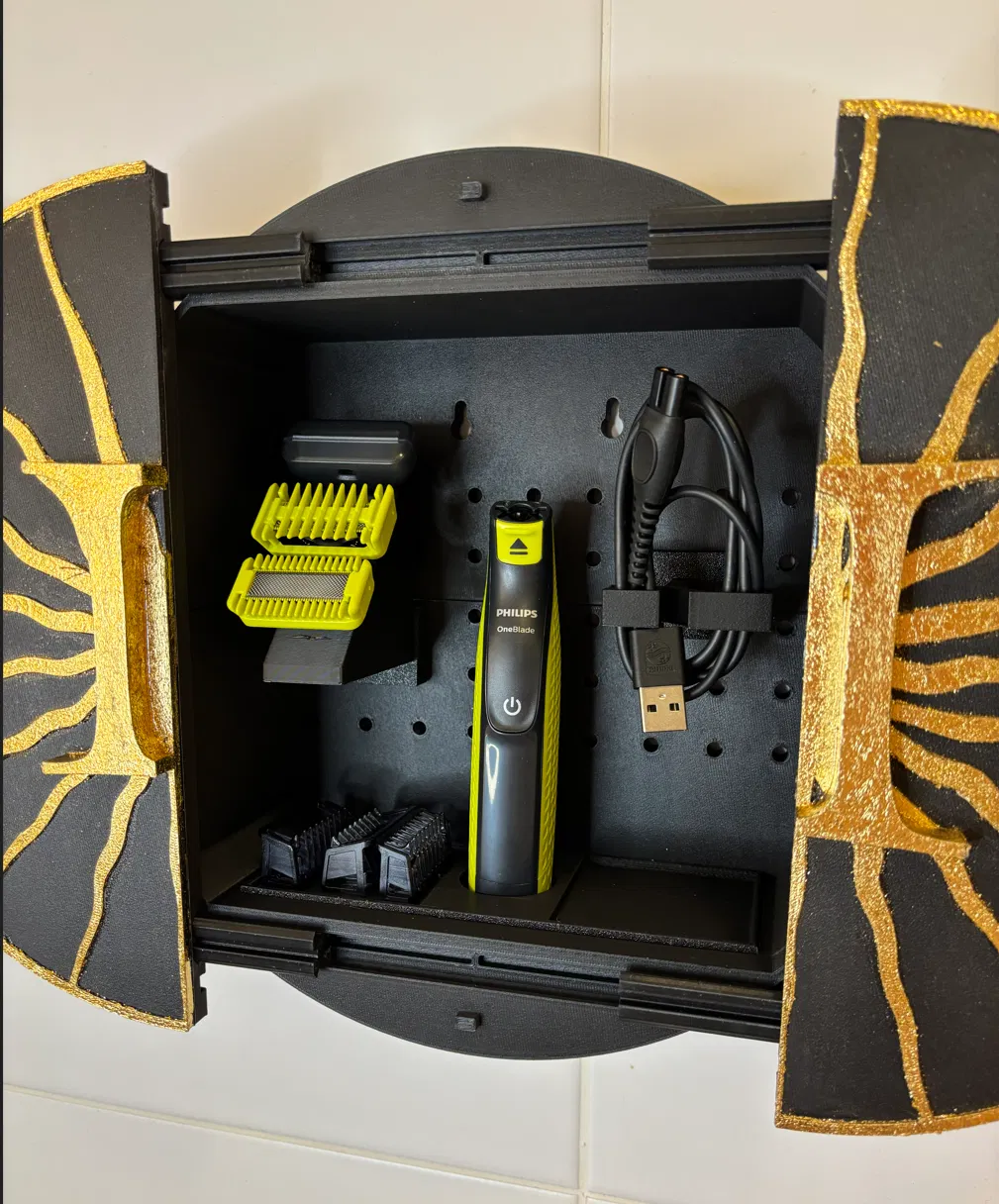 Đây là mẫu hộp lưu trữ Philips OneBlade có thể tùy chỉnh, cho phép sắp xếp phụ kiện gọn gàng theo phong cách Kingdom Come Deliverance. Thiết kế đi kèm bảng pegboard và các khay có thể thay đổi linh hoạt cho người dùng máy in 3D.