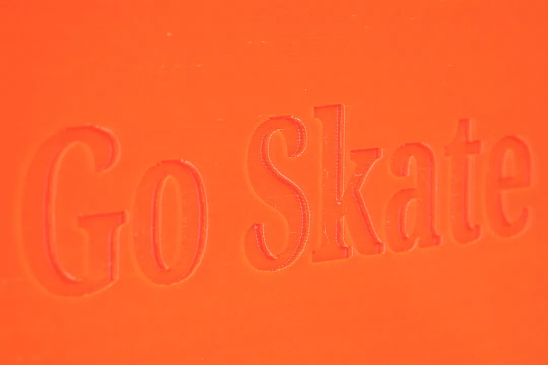 Tôi in chiếc giá này với vòi phun 0.6mm, chiều cao lớp in 0.36mm, 3 lớp tường (walls) và độ phủ 15% (infill) bằng nhựa PETG, để đảm bảo nó không bị cong vênh hay mềm ra dù phải tiếp xúc với nhiệt độ nắng hè qua cửa sổ văn phòng. Hãy lưu ý rằng bạn sẽ cần khoảng 800 gram nhựa để in. Đổi lại, bạn sẽ có một chiếc giá rất vững chãi, bám sàn tốt ngay cả với những chiếc ván nặng – như chiếc cruiser của tôi với bộ bánh xe 70mm hầm hố như trong hình. Để chống trượt tốt hơn, tôi đã gắn thêm 6 miếng đệm silicon nhỏ dưới đáy.