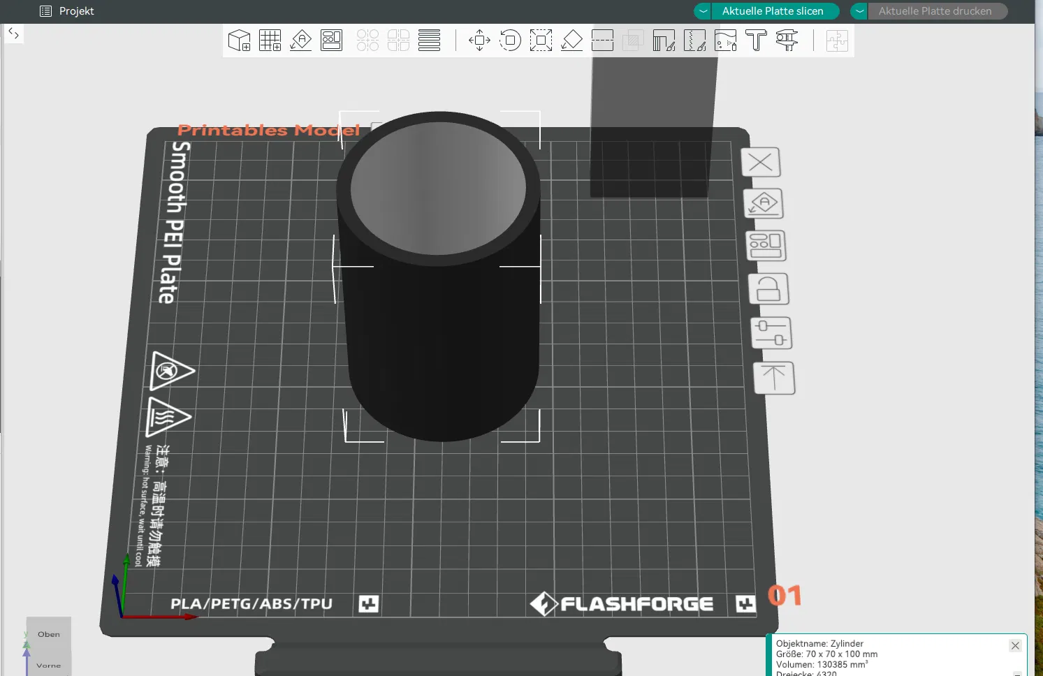 - Lưu ý: Vì là hình trụ đứng, hãy đảm bảo bàn in của bạn đã được cân chỉnh tốt để lớp đầu tiên bám dính chắc chắn, tránh việc bị lật hoặc hỏng giữa chừng.