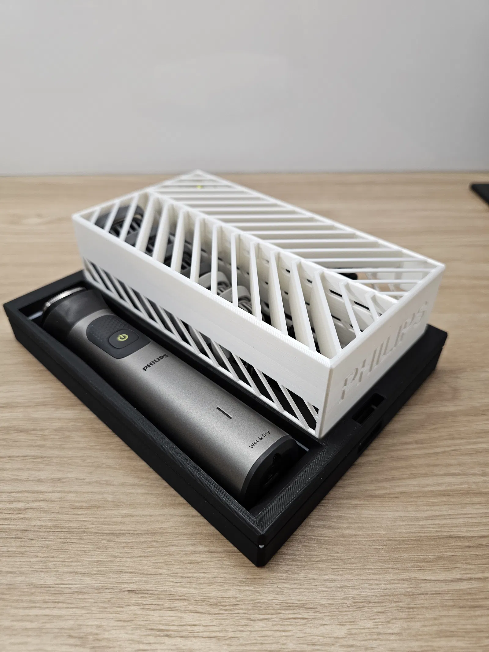 Chiếc khay đơn giản dành cho Philips Multigroom 7940, có thể biến tấu thành hộp đựng du lịch tiện lợi. Thiết kế tối ưu, tiết kiệm nhựa, hỗ trợ tùy chọn gắn nam châm hoặc lẫy khóa snap tiện dụng.
