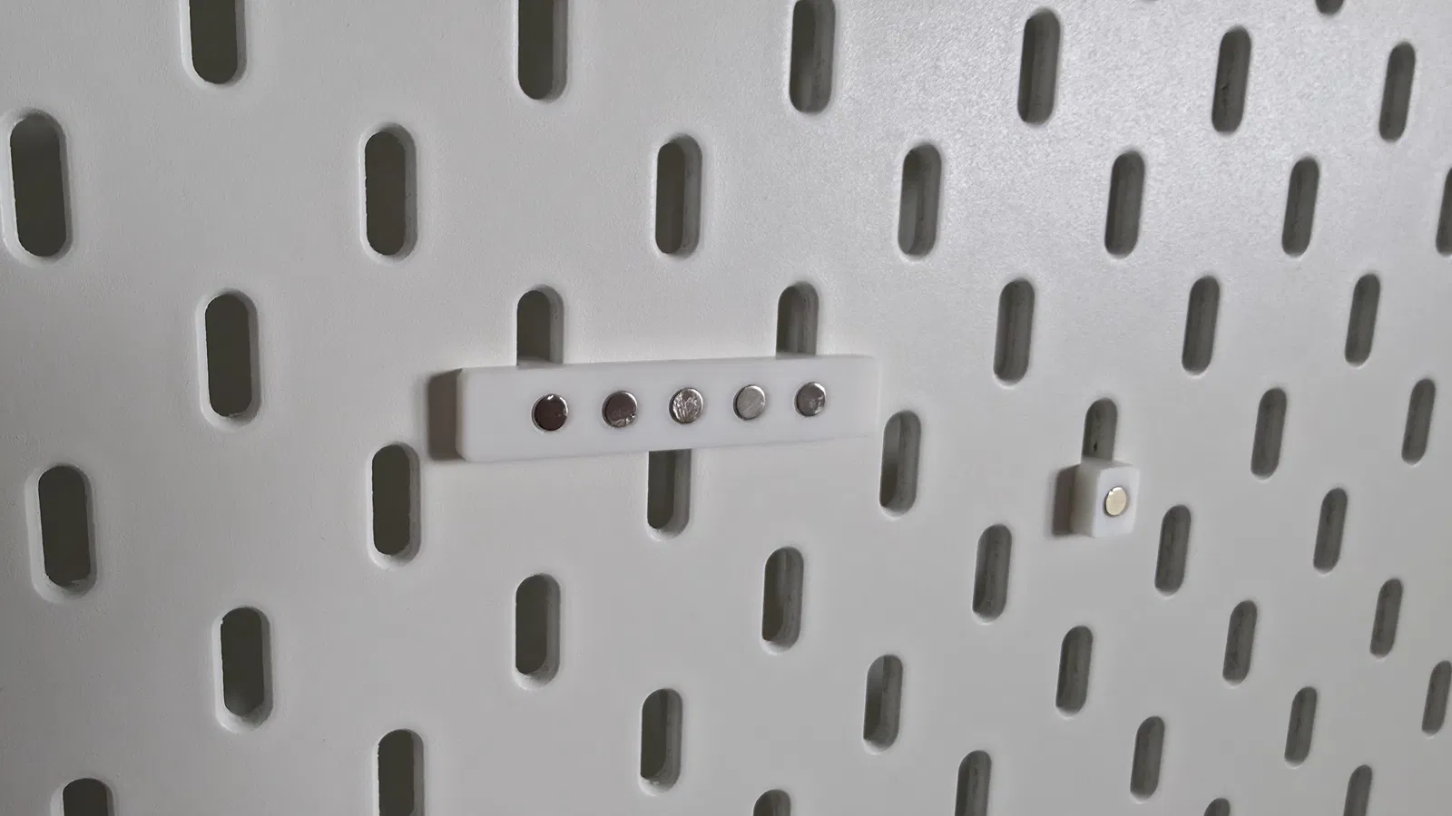 Bộ khay từ tính đơn giản, gọn gàng cho bảng IKEA Skadis của bạn. Gồm hai kích thước dành cho nam châm 5x2 mm. Thời gian in cực nhanh, dưới 20 phút. Thiết kế thông minh, lắp đặt dễ dàng mà không cần support.