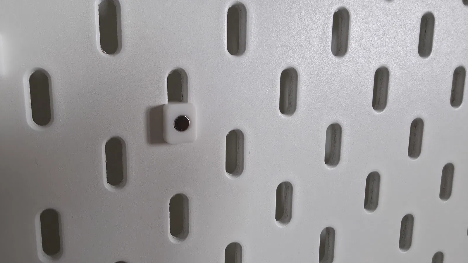 Phụ kiện cho bảng đục lỗ IKEA Skadis — những chiếc khay từ tính đơn giản giúp bạn gắn các vật dụng kim loại nhỏ hoặc dụng cụ trực tiếp lên bảng của mình.
