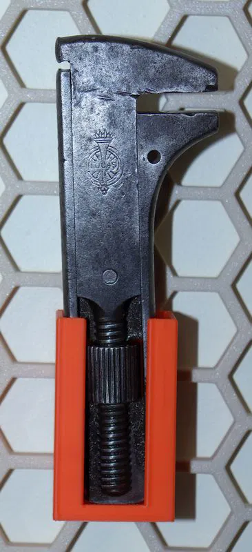 Đây là giá treo dành cho chiếc cờ lê điều chỉnh "Girder No. 91" của Joseph Lucas Ltd. Birmingham, được thiết kế chuyên dụng cho hệ thống tường lưu trữ Honeycomb Storage Wall (HSW). Cảm ơn RostaP vì thiết kế HSW tuyệt vời này. Mình đã in bằng nhựa PLA, thiết lập 5 lớp tường, 5 lớp bề mặt trên và dưới, cùng độ phủ (infill) 25%. Mẫu này tốn gần 13 gram nhựa và mất khoảng 40 phút để in trên máy BBL A1.