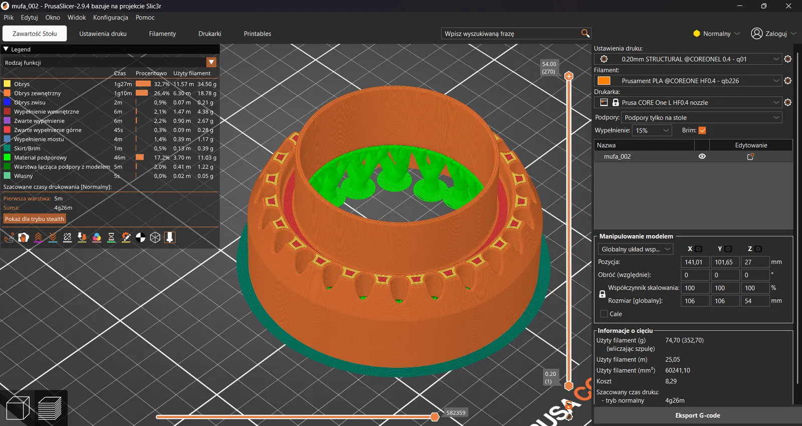 • với kích thước cuối cùng chuyển đổi sang kích thước lỗ trên vỏ lọc nâng cao của Prusa CORE One/+/L (các file _mufa003_mufa004).
