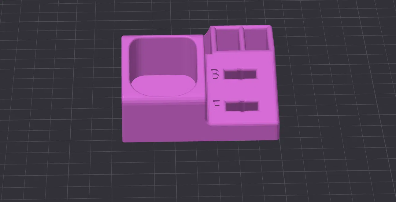 Nếu anh em đang sử dụng máy cạo râu Philips OneBlade Pro và muốn không gian phòng tắm của mình gọn gàng hơn, thì mẫu đế in 3D này chính là giải pháp hoàn hảo. Đây là bản cải tiến từ mẫu đế nổi tiếng của erdo092, được thiết kế chuyên biệt để giúp anh em quản lý các lưỡi dao một cách khoa học nhất. Điểm đặc biệt của phiên bản này là các ký hiệu 'B' (Body - cơ thể) và 'F' (Face - mặt) được khắc trực tiếp lên khay, giúp anh em phân biệt rõ ràng từng lưỡi dao cho những mục đích sử dụng khác nhau mà không lo bị nhầm lẫn.