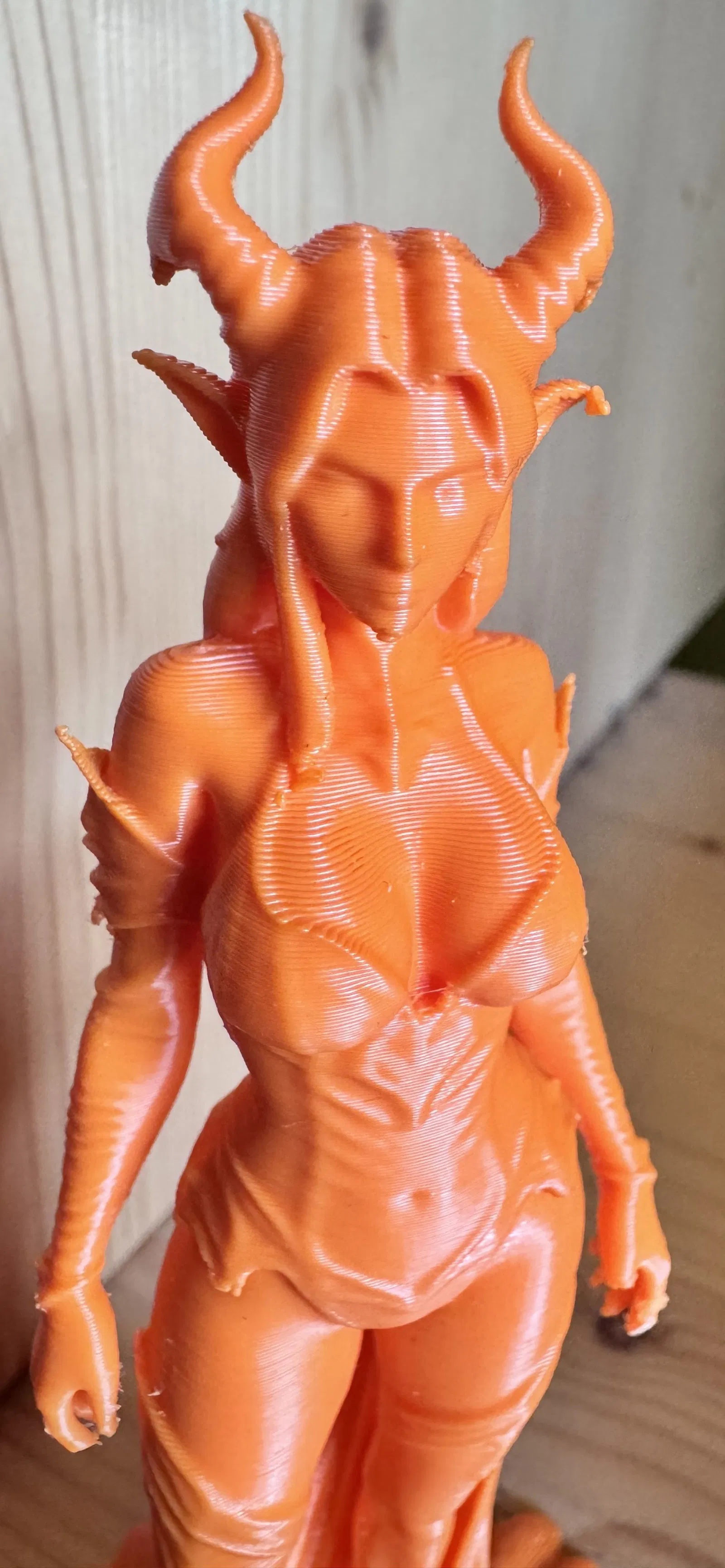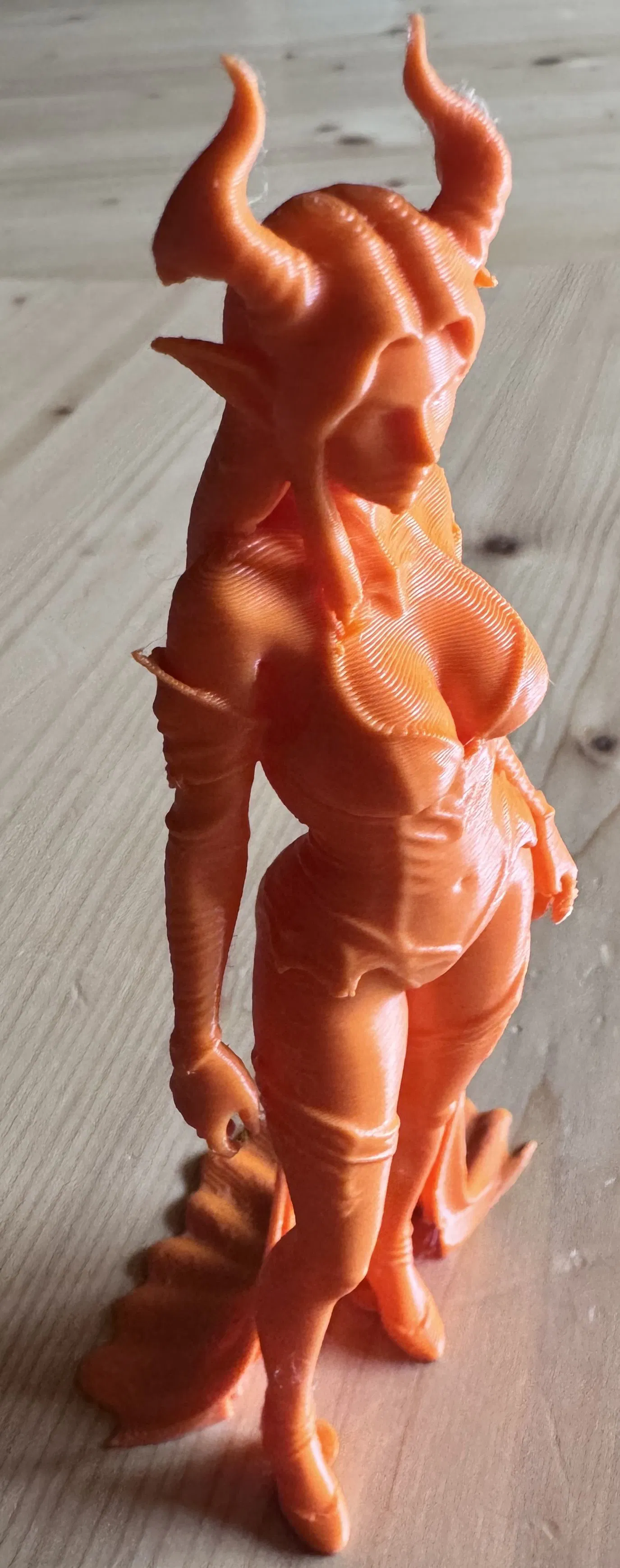 Bản làm lại của mẫu sexy demon elf với phần váy và giày được điều chỉnh để tăng diện tích tiếp xúc, giúp bám bàn in tốt hơn và ổn định hơn. Một tác phẩm tuyệt vời cho những người yêu thích nhân vật fantasy, dù việc gỡ support sẽ hơi tốn công chút nhé!