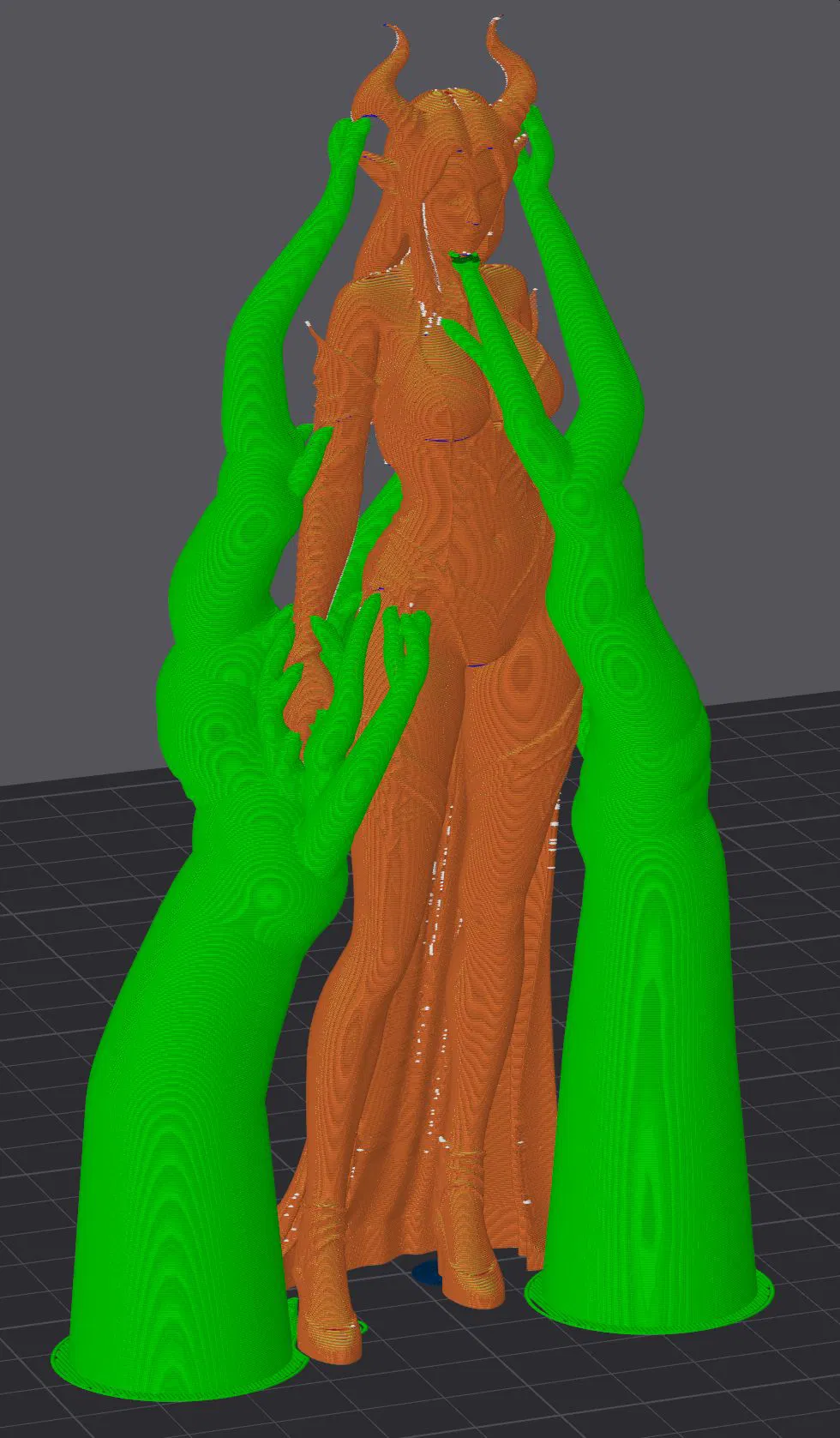 Mình đã tối ưu hóa phiên bản này để quá trình in trở nên đáng tin cậy hơn nhiều. Những cải tiến chính bao gồm kéo dài phần váy xuống thấp hơn và điều chỉnh giày dép phẳng hơn, giúp tăng diện tích bề mặt tiếp xúc trên bàn in. Những thay đổi này cải thiện đáng kể độ bám dính của bàn in và độ ổn định trong khi in mà không làm mất đi các chi tiết thẩm mỹ của nhân vật. Rất phù hợp cho những ai đam mê thể loại dark fantasy và các mẫu tượng nhân vật chất lượng cao.