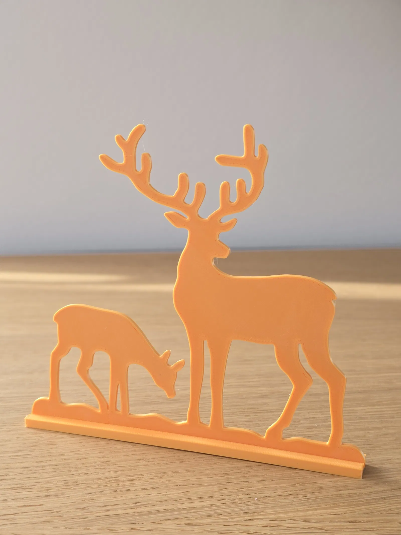 Weidmannsheil! Mình xin chia sẻ với mọi người một mô hình trang trí hình chú hươu đực và nai con. Đây là thiết kế in 3D gồm hai phần, các bạn chỉ cần cắm mô hình hươu vào đế là xong, hoặc nếu muốn cố định chắc chắn hơn thì có thể dùng một giọt keo 502 nhé. Đừng quên rằng sản phẩm này có những ưu điểm sau: thiết kế độc bản không sử dụng AI ảnh chụp gốc, không qua chỉnh sửa tự tay mình lên ý tưởng thiết kế * đã in thử nghiệm và kiểm tra kỹ lưỡng