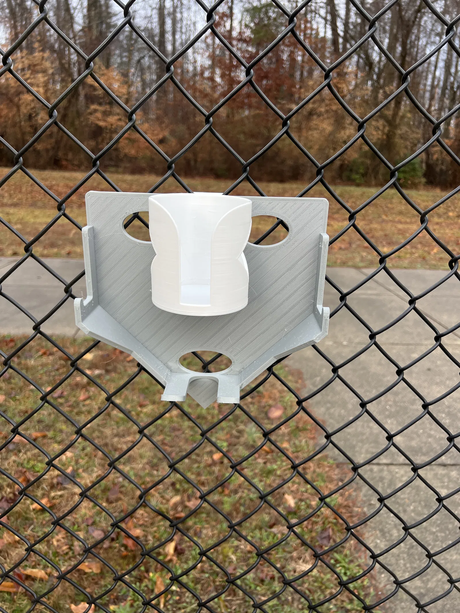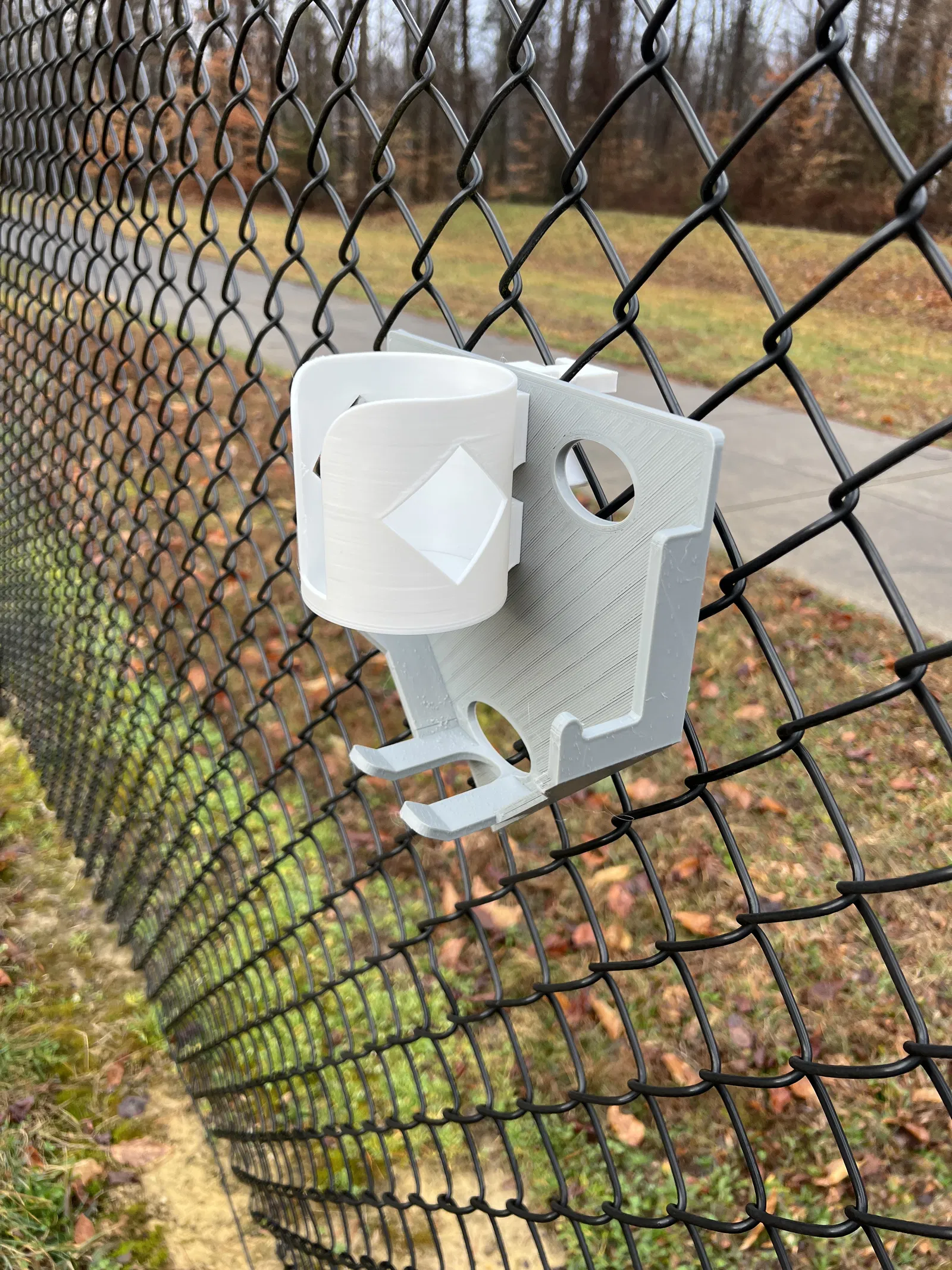 Mình đã làm phần đế chính to hơn (khoảng 9 ½ inch hay 240 mm chiều rộng) và thêm hai lỗ ở phía trên để có thể móc thêm dây bungee nếu cần. Phần giữ cốc và móc treo hàng rào vẫn giữ nguyên thiết kế cũ. Mình vẫn áp dụng các gợi ý in ấn ban đầu, nhưng có thêm một modifier ở phần móc treo gậy. Modifier này giúp tăng độ dày vách từ 3 lên 6 lớp để chắc chắn hơn.