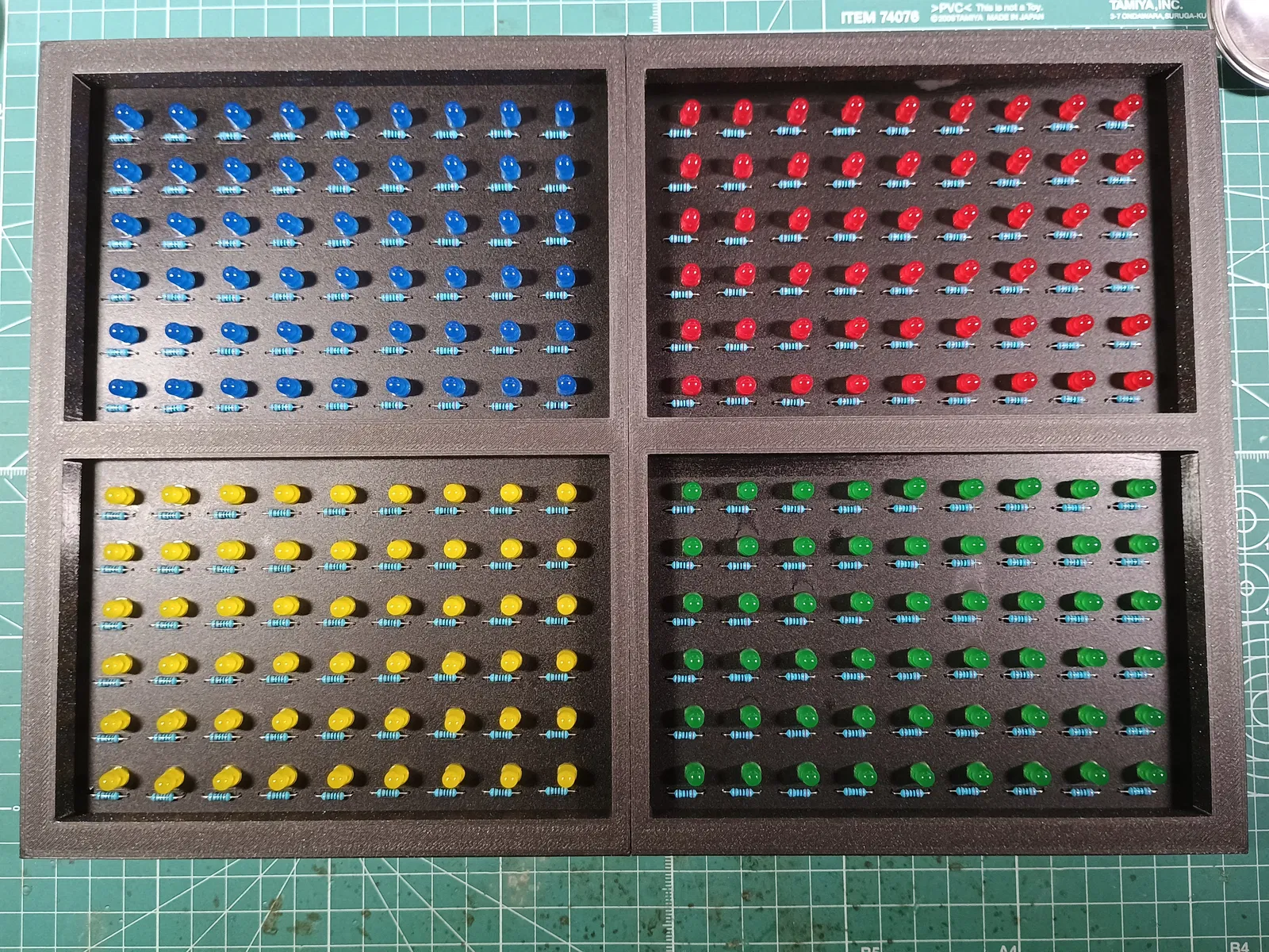 54 điện trở mỗi bảng (tổng cộng 216, mình dùng 162 con loại 2K và 54 con 1K cho màu vàng)
