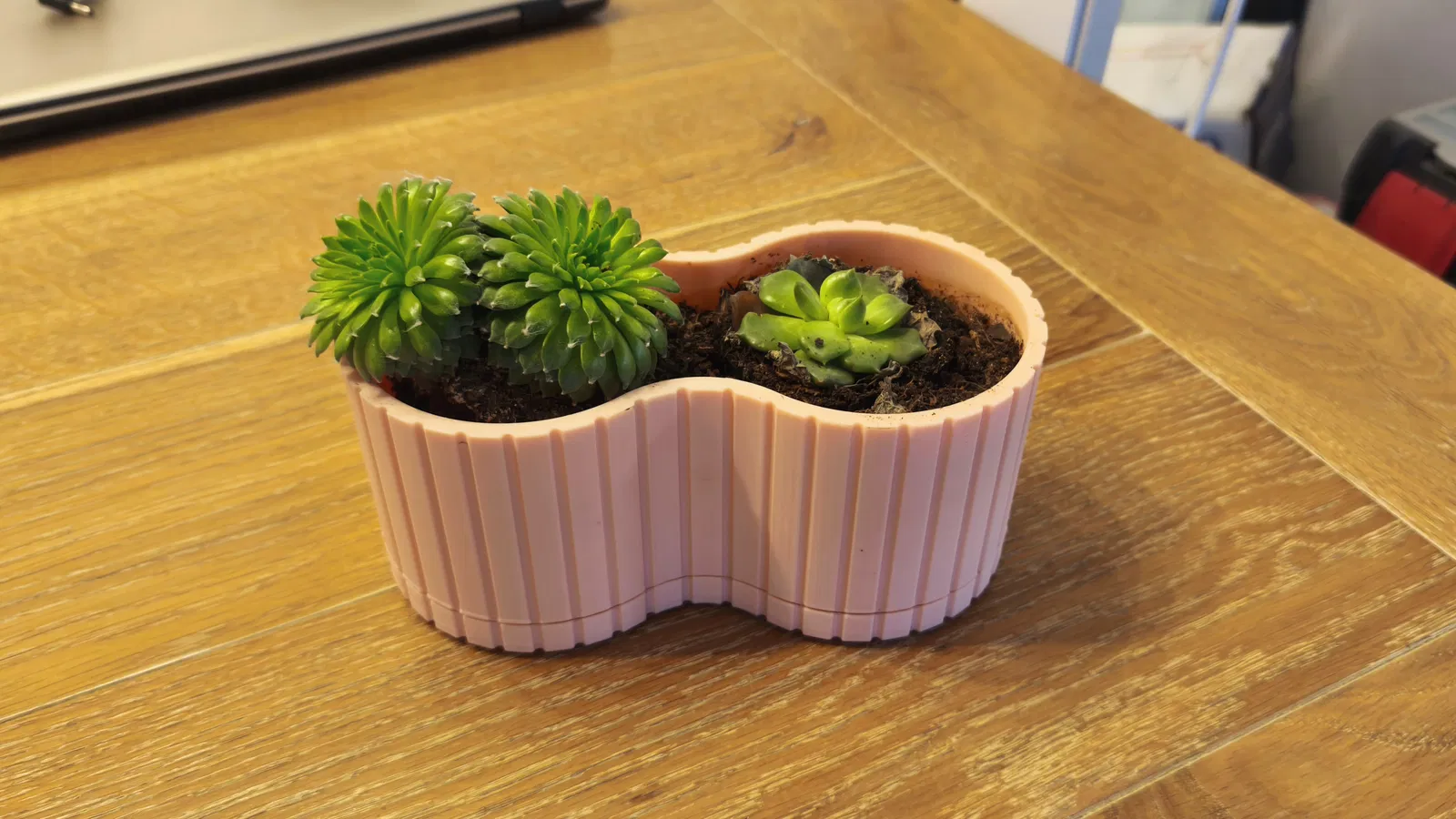 Bạn đang tìm kiếm một món đồ trang trí nhỏ xinh cho góc làm việc hay ban công nhà mình? Mẫu chậu trồng cây này chính là lựa chọn tuyệt vời, với thiết kế hiện đại, tinh tế và vô cùng tiện dụng. Kiểu dáng uốn lượn hình số 8 cách điệu không chỉ giúp chậu trông bắt mắt hơn mà còn tạo không gian đủ rộng để bạn trồng phối hợp nhiều loại cây mọng nước (succulents) hoặc xương rồng nhỏ. Đây thực sự là món phụ kiện in 3D hoàn hảo để làm mới không gian xanh của riêng bạn một cách dễ dàng và nhanh chóng.