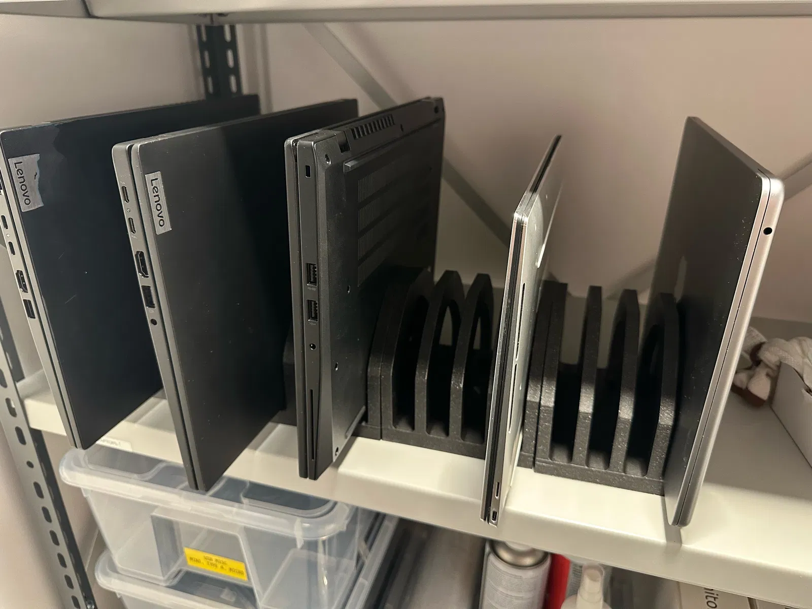Giải pháp lưu trữ thông minh giúp sắp xếp gọn gàng nhiều laptop trên kệ. Thiết kế dạng mô-đun tùy chỉnh được độ rộng, cực kỳ tiện lợi cho văn phòng hoặc kho IT để bảo quản thiết bị an toàn và tiết kiệm diện tích.