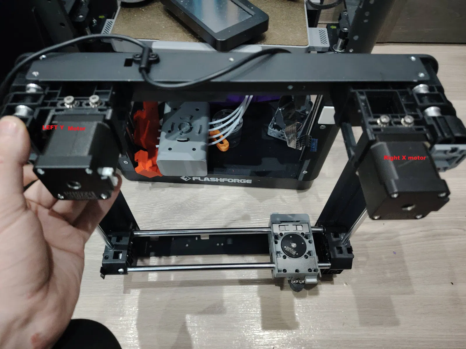 Phần giá đỡ trục X này khác biệt so với bản gốc. Nó không bị treo lơ lửng và chiều dài các thanh dẫn hướng đã được tăng lên.