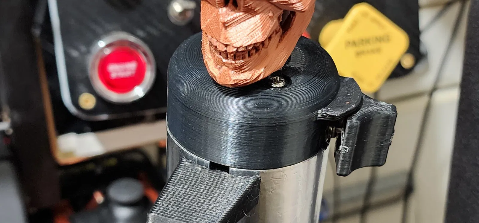 Đã chỉnh sửa cho hộp sọ poly thấp để sử dụng làm núm thay đổi cho giàn sim của tôi, vít vào tiêu chuẩn bu lông 8 mm với Logitech