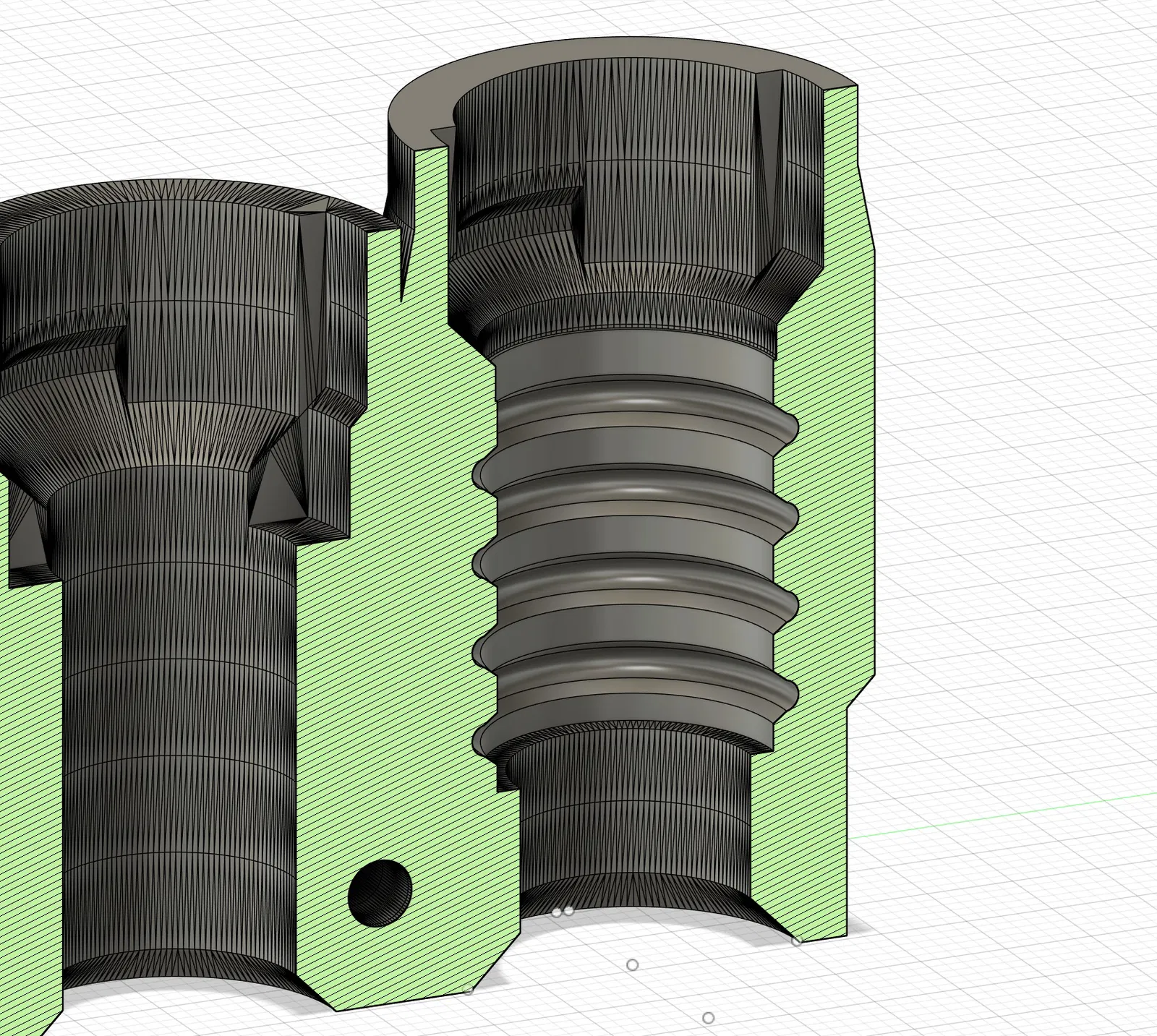 Mình thấy phần giữ nòng (barrel retention) của khẩu Vulture khá lỏng lẻo khi chỉ dùng mỗi vòng đệm o-ring, lại còn in không đẹp nếu không có support. Mình thì không muốn dùng ốc siết (grub screws) làm trầy nòng nên đã tự thiết kế lại kiểu ngàm giữ nòng bằng o-ring riêng. Kết quả là nó giúp cố định nòng tốt hơn và cũng khắc phục được tình trạng nòng hơi bị lệch so với thiết kế gốc.