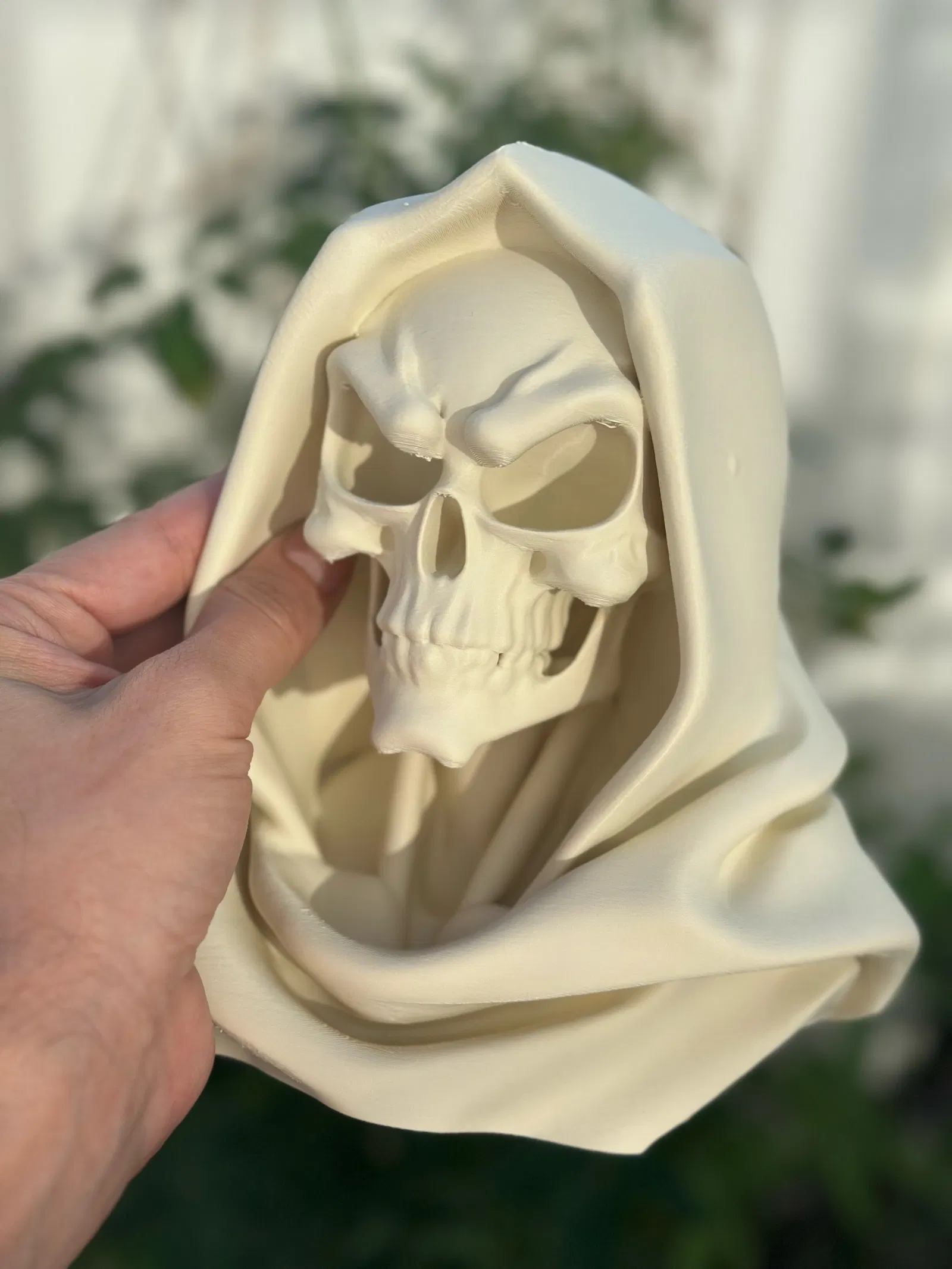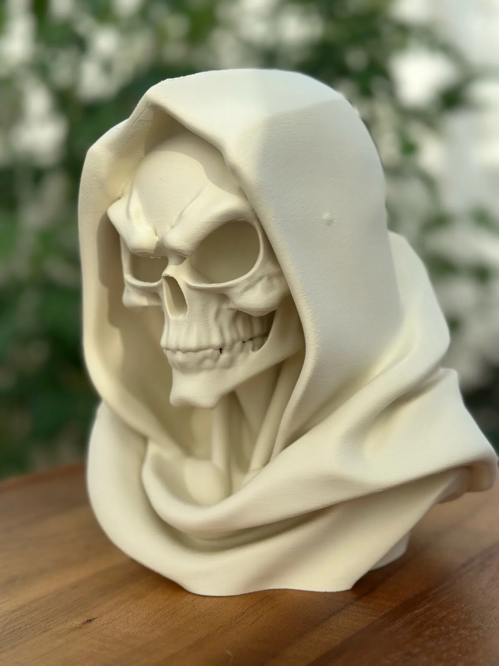 Từng đường nét trên tượng được chăm chút tỉ mỉ từ phần hốc mắt sâu hun hút cho đến những nếp gấp của chiếc áo choàng trùm đầu. Đây không chỉ là một bức tượng trang trí đơn thuần mà còn là minh chứng cho sự kỳ diệu của công nghệ in 3D hiện đại. Dù đặt ở bàn làm việc, kệ sách hay dùng làm phụ kiện trưng bày cho dịp lễ Halloween, bức tượng chắc chắn sẽ thu hút mọi ánh nhìn và tạo nên bầu không khí vô cùng đặc biệt cho căn phòng của bạn.
