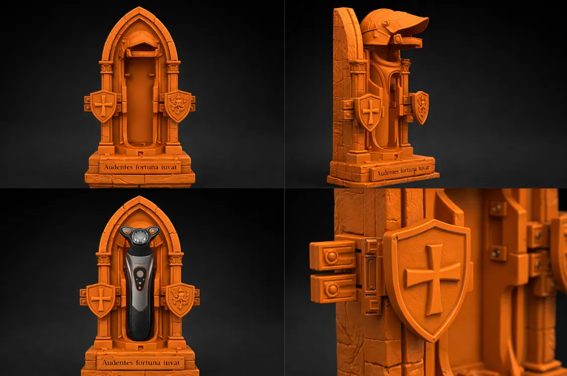 Giờ đây, chiếc máy cạo râu của bạn đã có thể được đặt trong một "hốc đá" thu nhỏ, giống như một thanh kiếm được cất giữ trong tường thành vậy.