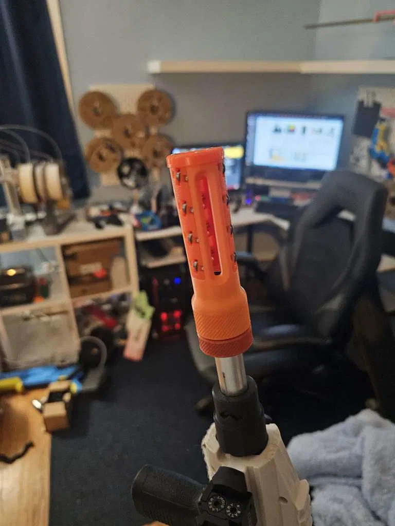 Bạn cần in một phần vỏ (housing) và một đai ốc kẹp (Collet Nut) để sử dụng. Bạn cũng cần thêm một vòng đệm cao su 016 O-Ring để cố định thiết bị vào nòng.