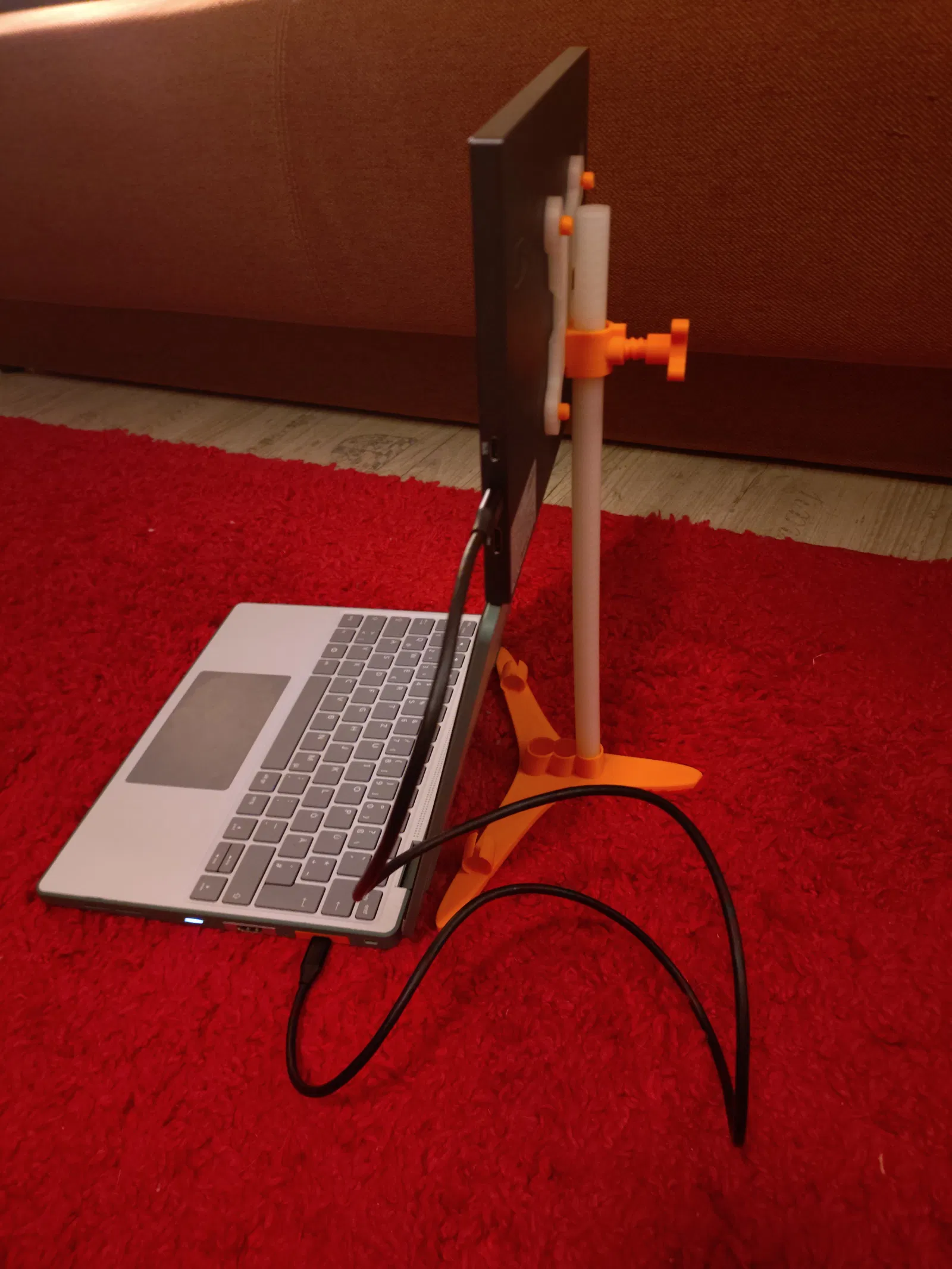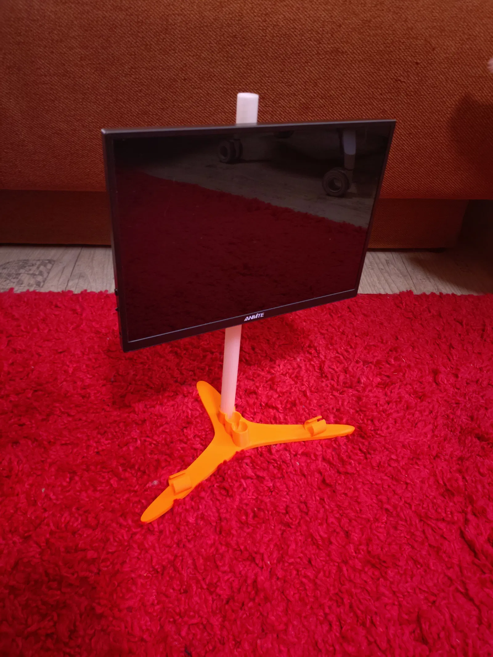 Mẫu chân đế nhỏ gọn cho màn hình di động 10 inch, hỗ trợ chuẩn VESA 75mm và 100mm, đồng thời dùng được cho cả điện thoại và máy tính bảng. Thiết kế tối ưu, tốn chưa đầy 100g nhựa cho mỗi bản in hoàn thiện.