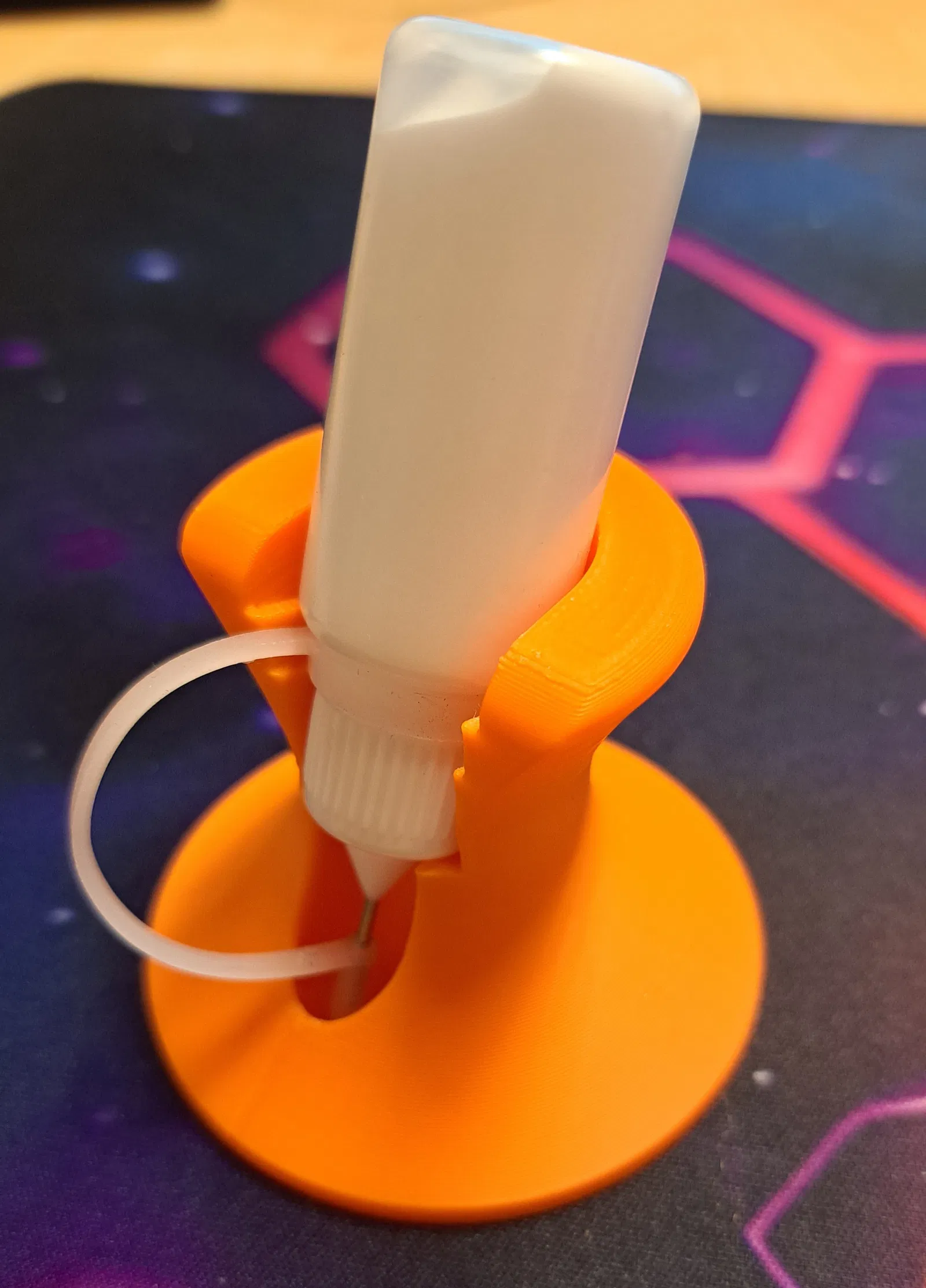Một chiếc giá nhỏ giúp bạn đặt ngược các chai đầu kim 10 mL một cách tiện lợi. Thiết kế có hốc giữ chất lỏng rò rỉ, cực kỳ hữu ích khi sử dụng với keo hoặc màu vẽ dạng sệt cho mô hình.