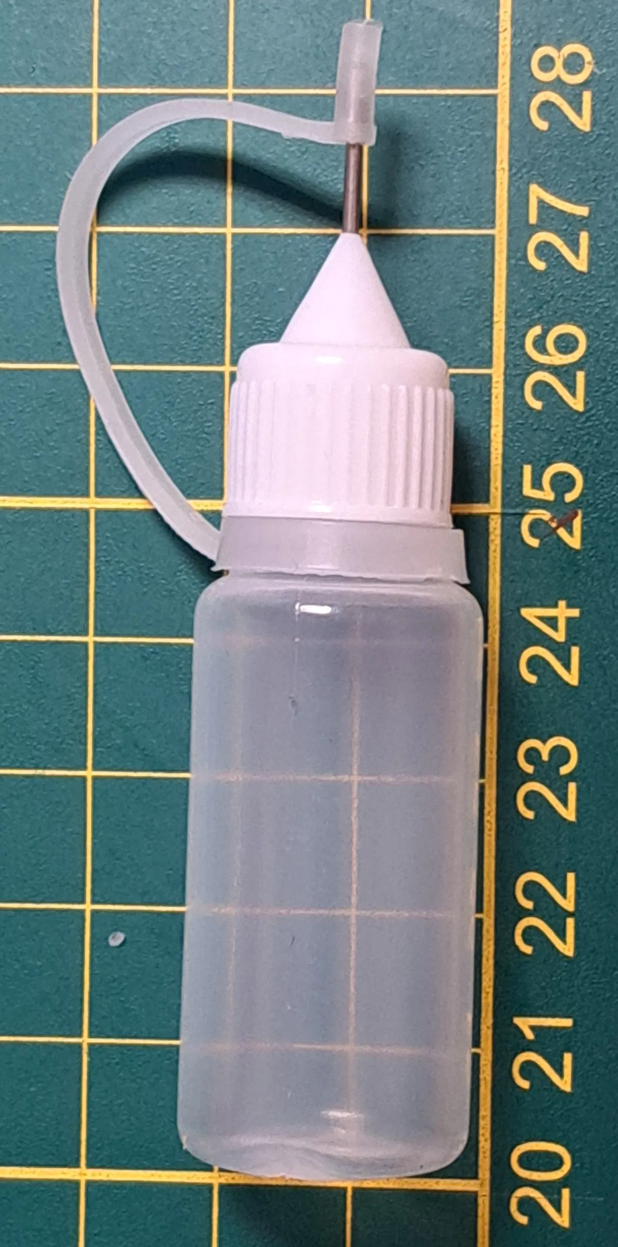 Phù hợp cho các chai đầu kim 10 mL loại nhỏ. Đường kính 20 mm. Chiều cao từ đáy đến đỉnh là 8 cm. Xem hình đính kèm. Đối với keo hoặc màu vẽ (những loại có độ sệt), việc để chai dốc ngược là rất tiện lợi. Phần đầu kim của chai khi đặt vào giá sẽ nằm gọn trong một cái hốc nhỏ. Nếu có bị rò rỉ thì nó cũng nằm lại trong đó. Mình đang tính thử đặt thêm miếng bông gòn ướt vào trong hốc để giữ ẩm, giúp đầu kim không bị khô dù không cần đậy nắp... cái này thì cần phải thử nghiệm thêm.