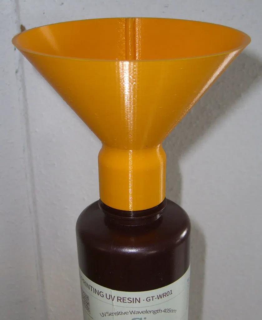 Phễu chiết nhựa Resin tiện dụng, tương thích với các dòng chai từ Anycubic, Elegoo, Geeetech, Siraya Tech. Thiết kế cải tiến với phần ren giúp vặn chặt vào chai dễ dàng, không cần support khi in.