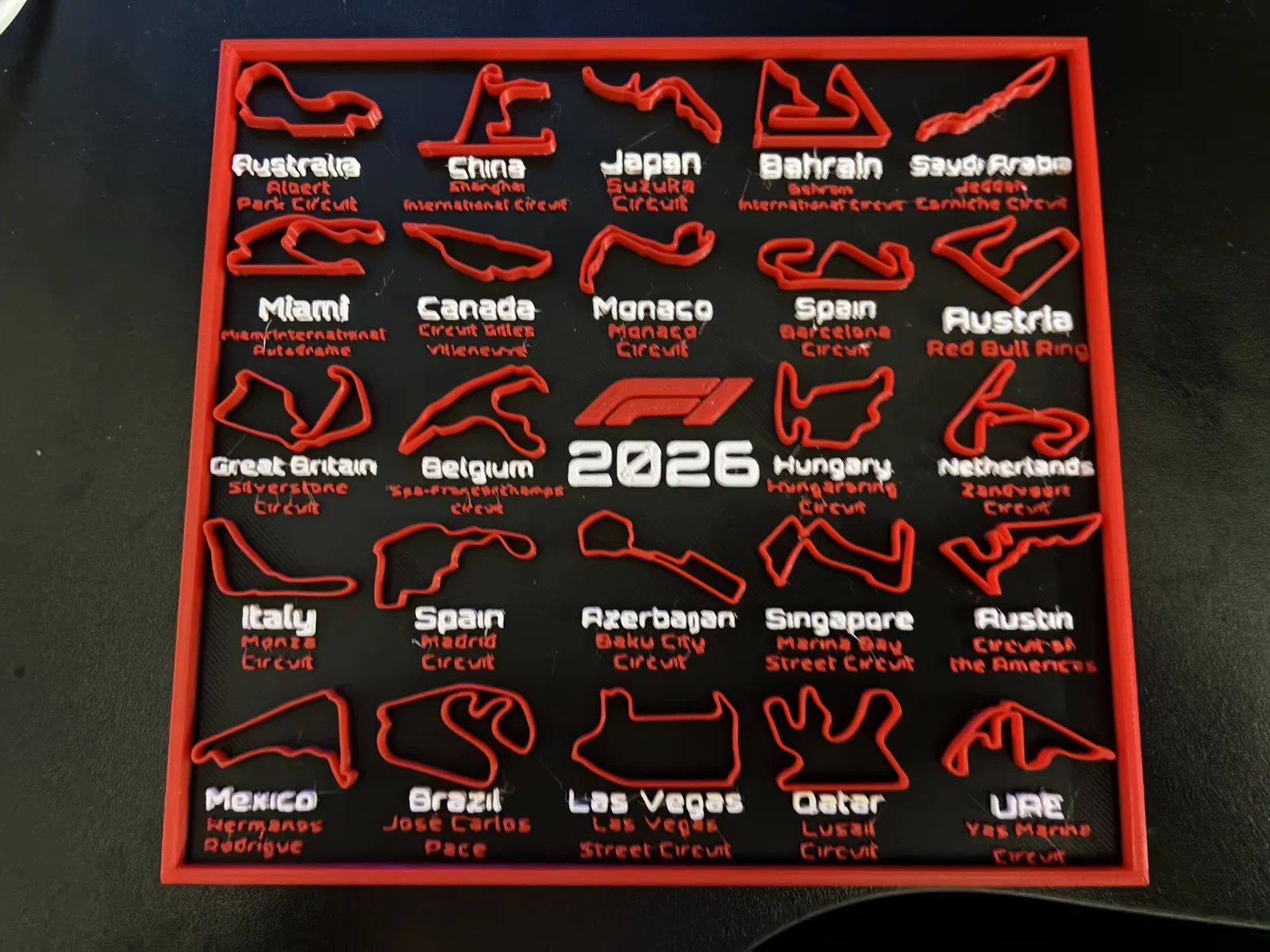 Nếu bạn là một fan hâm mộ cuồng nhiệt của bộ môn thể thao tốc độ F1, thì mẫu mô hình bảng lịch trình F1 2026 này chính là món đồ trang trí không thể thiếu cho góc làm việc hoặc phòng giải trí của bạn. Sản phẩm này được thiết kế một cách tinh xảo, tái hiện lại hình dáng của các đường đua nổi tiếng nhất thế giới sẽ xuất hiện trong mùa giải 2026. Điểm đặc biệt của phiên bản này là tác giả đã chỉnh sửa và cập nhật chính xác vị trí của các đường đua tại Tây Ban Nha, giúp người xem có cái nhìn chuẩn xác nhất về lộ trình thi đấu trong năm tới.