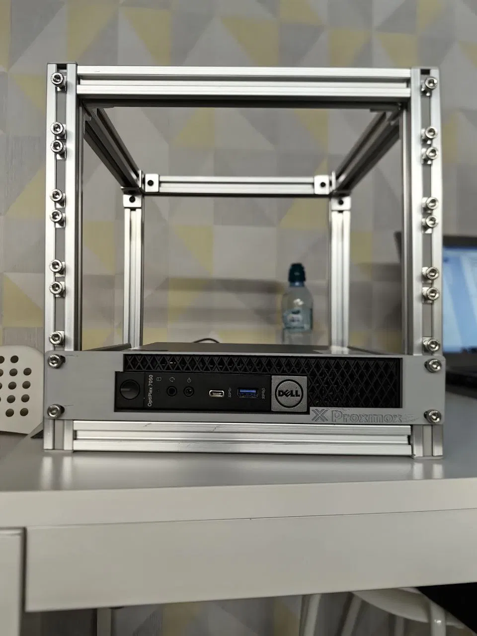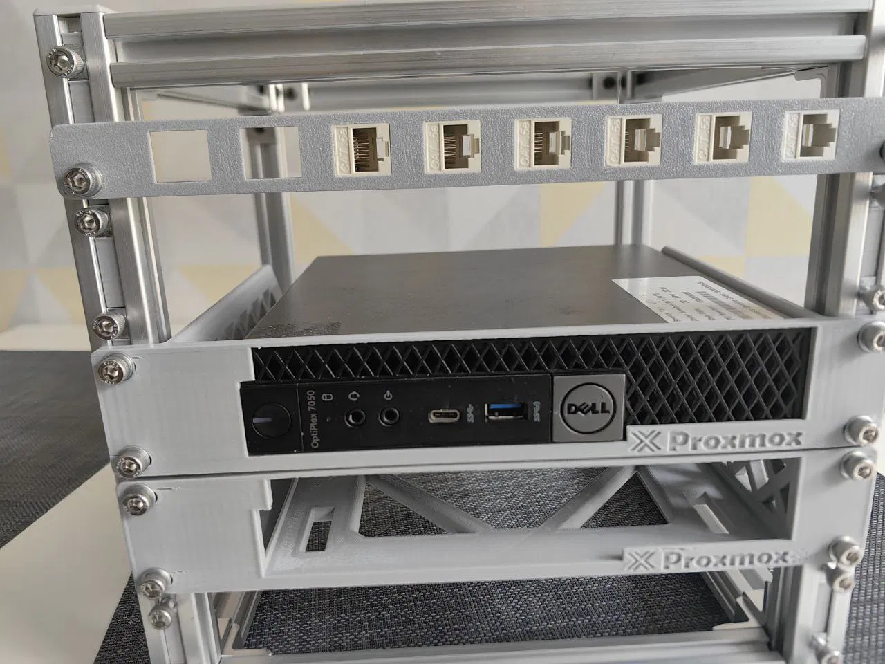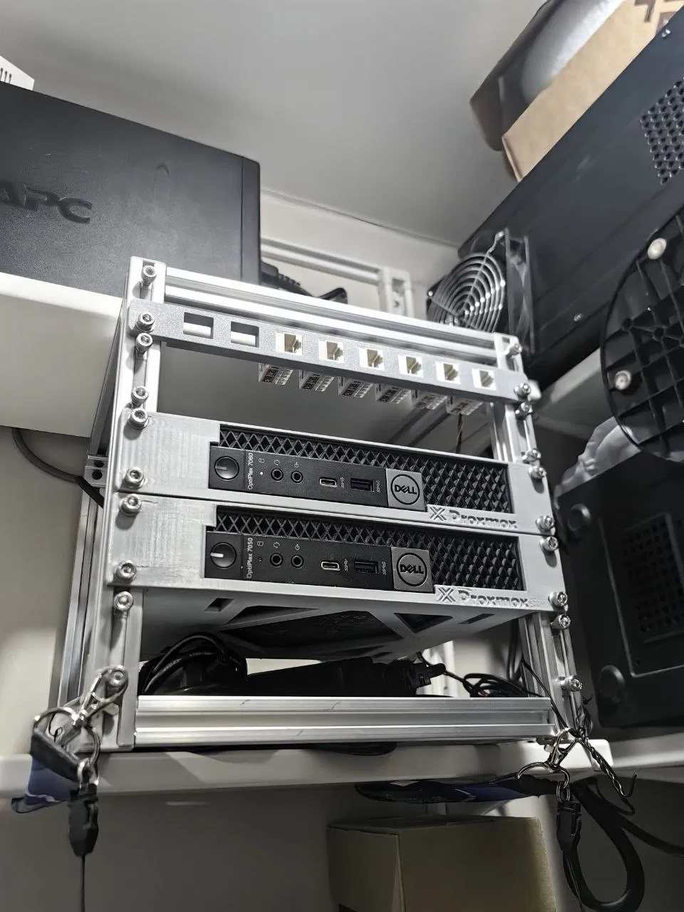 Mình đang tự ráp dàn lab tại nhà bằng các máy Dell Optiplex. Đây là dự án tốn nhiều công sức nhất của mình từ trước đến nay. Phần khung được làm từ nhôm định hình 20x20 (rãnh 6) mà mình tình cờ kiếm được. Mặt trước được thiết kế theo đúng tiêu chuẩn rack 10 inch. Các kích thước còn lại đều do mình tự tính toán dựa trên vật liệu có sẵn. Mình có dùng thêm phụ kiện (con trượt) cho loại nhôm này để bắt vít M5. Phần đế đỡ phía sau chỉ cần thiết nếu bạn không chắc chắn về độ cứng của nhựa, còn với nhựa PETG mình in thì nó giữ rất chắc chắn, không bị võng chút nào nên không cần dùng đến. Mình có đính kèm file Solidworks chứa kích thước rack của mình để các bạn tham khảo. Các bạn có thể lấy kích thước trực tiếp từ file (hoặc cứ nhắn mình, mình sẽ hỗ trợ). Kết quả đạt mức tạm ổn, dù chưa gọi là hoàn hảo lắm.