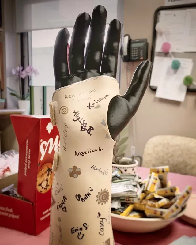 Toàn bộ tác phẩm có độ cong nhẹ hơn ở ngón út so với phiên bản tách rời. Cả hai đều cần các hỗ trợ.