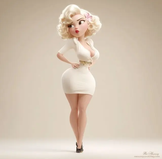 Mô hình 3D cô nàng Pin-Up mặc váy trắng phong cách cổ điển
